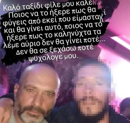 «Καλό ταξίδι φίλε μου καλέ… Ποιος να το ήξερε πως θα φύγεις από εκεί που είμασταν και θα γίνει αυτό, ποιος να το ήξερε πως το καληνύχτα τα λέμε αύριο δεν θα γίνει ποτέ… Δεν θα σε ξεχάσω ποτέ ψυχολογε μου…», αναφέρει στην ανάρτησή του.