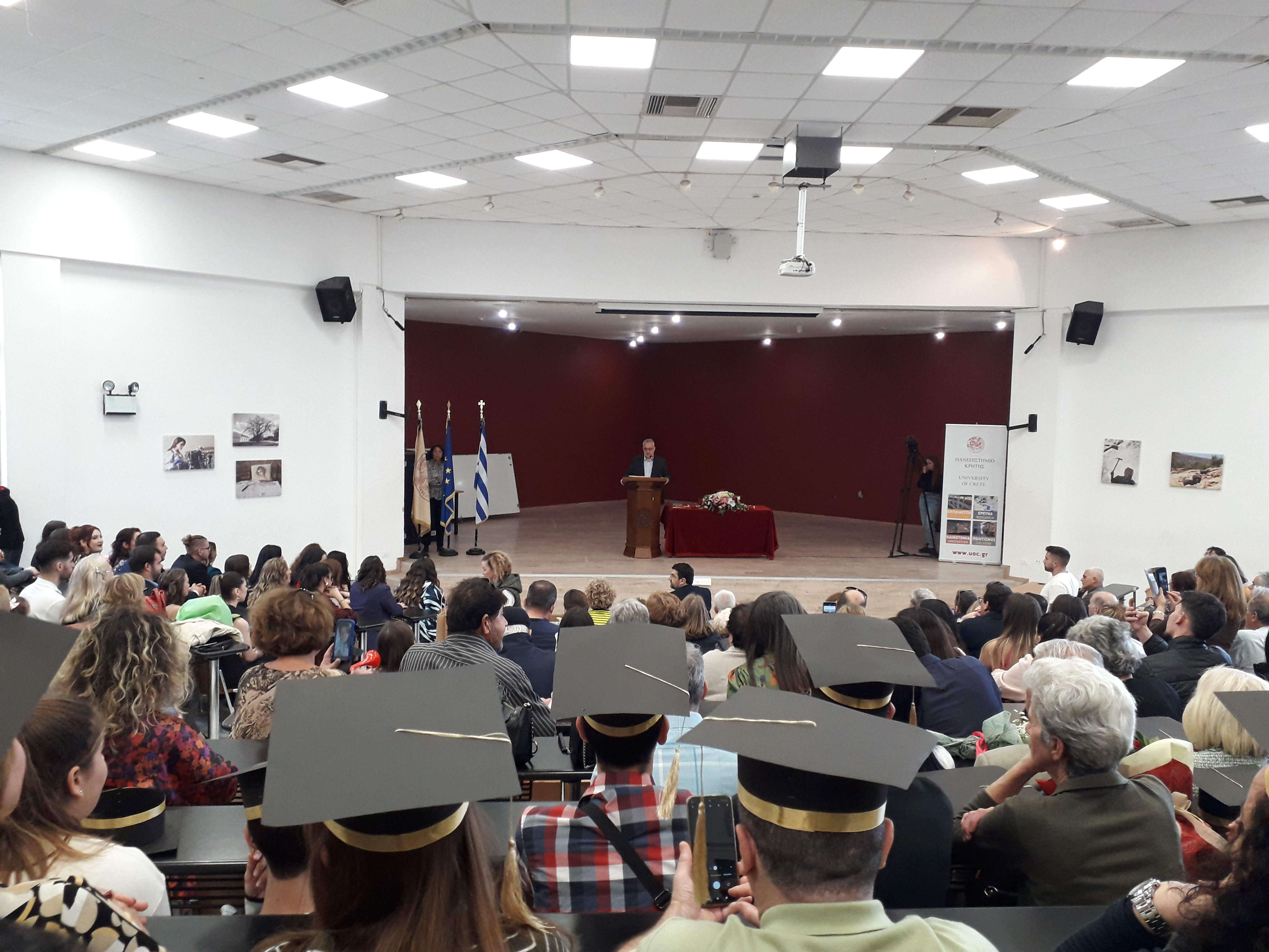 O Αντιπρύτανης Οικονομικών και Υποδομών Καθηγητής Κωνσταντίνος Σπανουδάκης στο σύντομο χαιρετισμό του αναφέρθηκε στην ιστορία του Πανεπιστημίου Κρήτης από την ίδρυσή του μέχρι σήμερα καθώς και στην κατάταξη του στις πρώτες θέσεις των Ελληνικών Πανεπιστημίων.