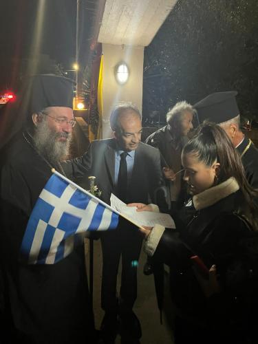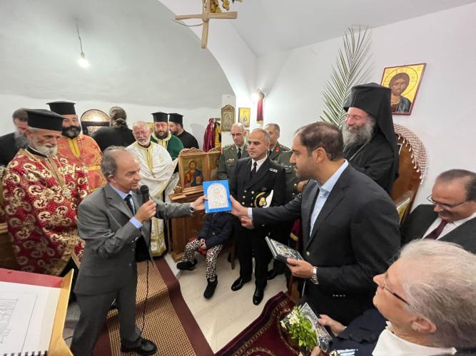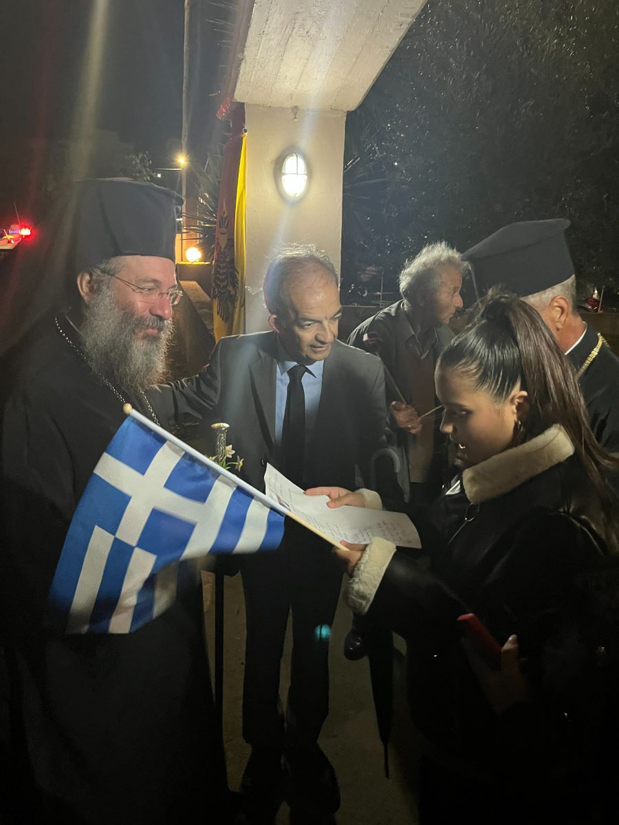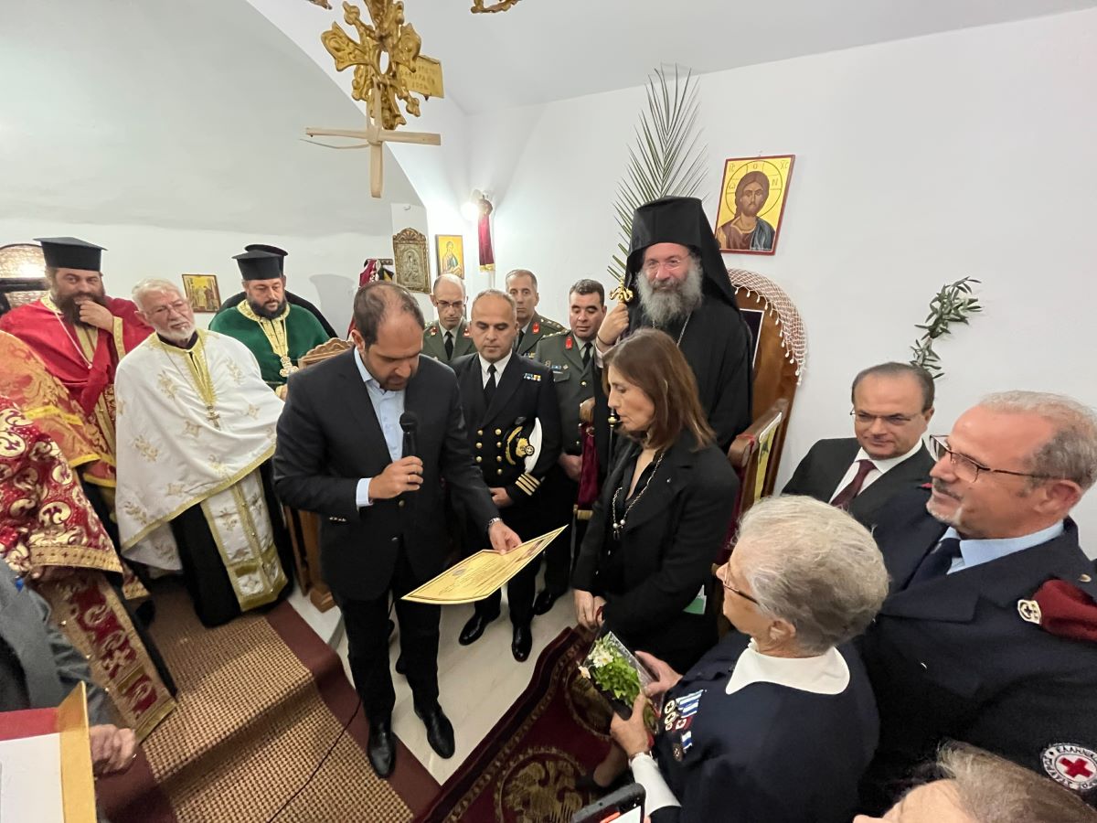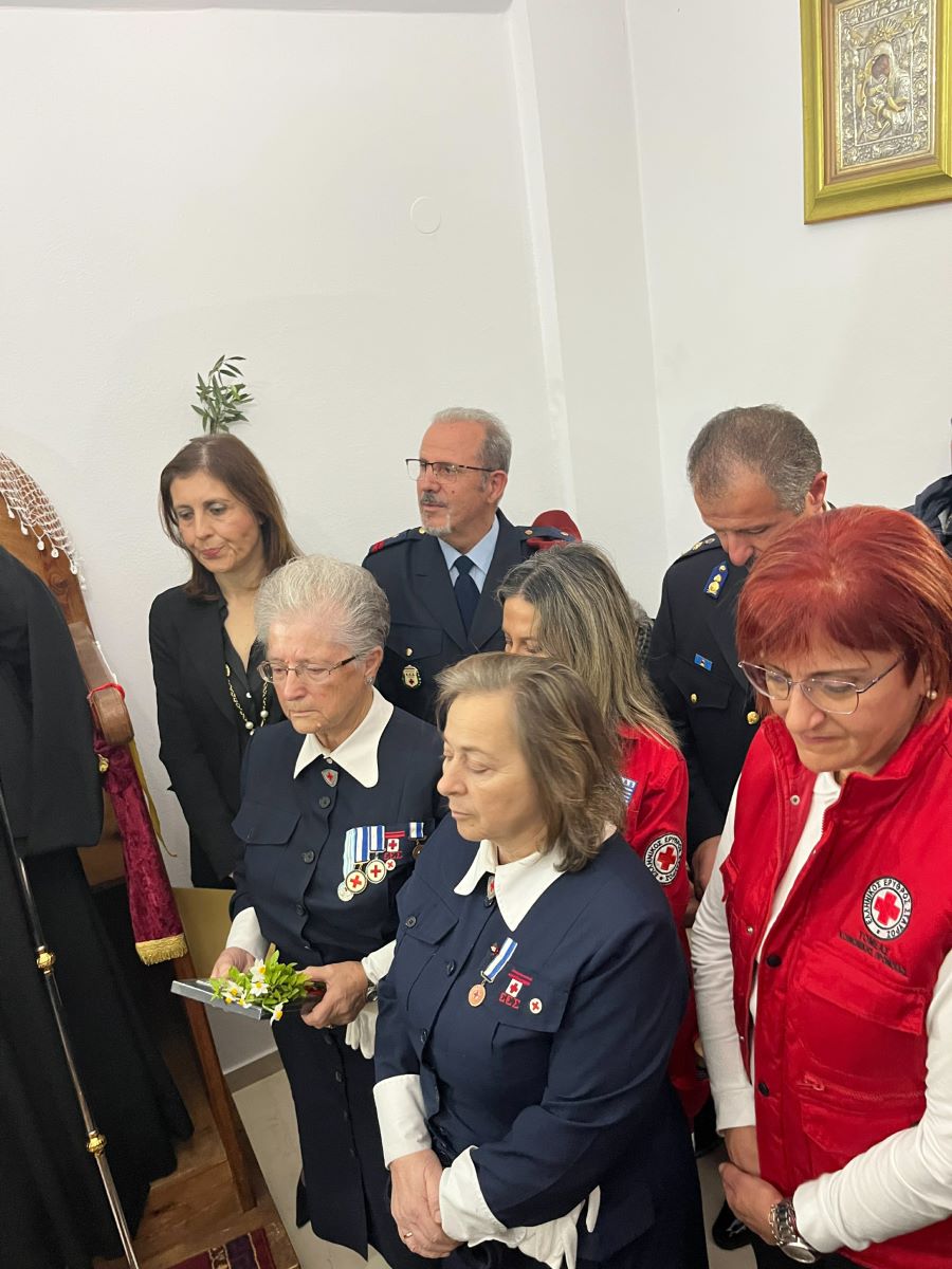 Προ της απολύσεως του Εσπερινού, ο Σεβασμιώτατος Ποιμενάρχης μας κ. Πρόδρομος επέδωσε εύφημο μνεία προς τον Ελληνικό Ερυθρό Σταυρό για το σπουδαίο έργο που επιτελούν, καθώς και Ιερές Εικόνες στον Εξοχώτατο κ. Υφυπουργό, και δι’ αυτού στον Αρχηγό του Γενικού Επιτελείου Στρατού, και στα μέλη του Δ.Σ. του Ελληνικού Ερυθρού Σταυρού-Παραρτήματος Ρεθύμνης, με τη σχετική φροντίδα του κτήτορος του Ιερού Ναού κ. Ιωσήφ Κολυβάκη, ο οποίος είχε προετοιμάσει τα πάντα με λεπτομέρεια και καλαισθησία.