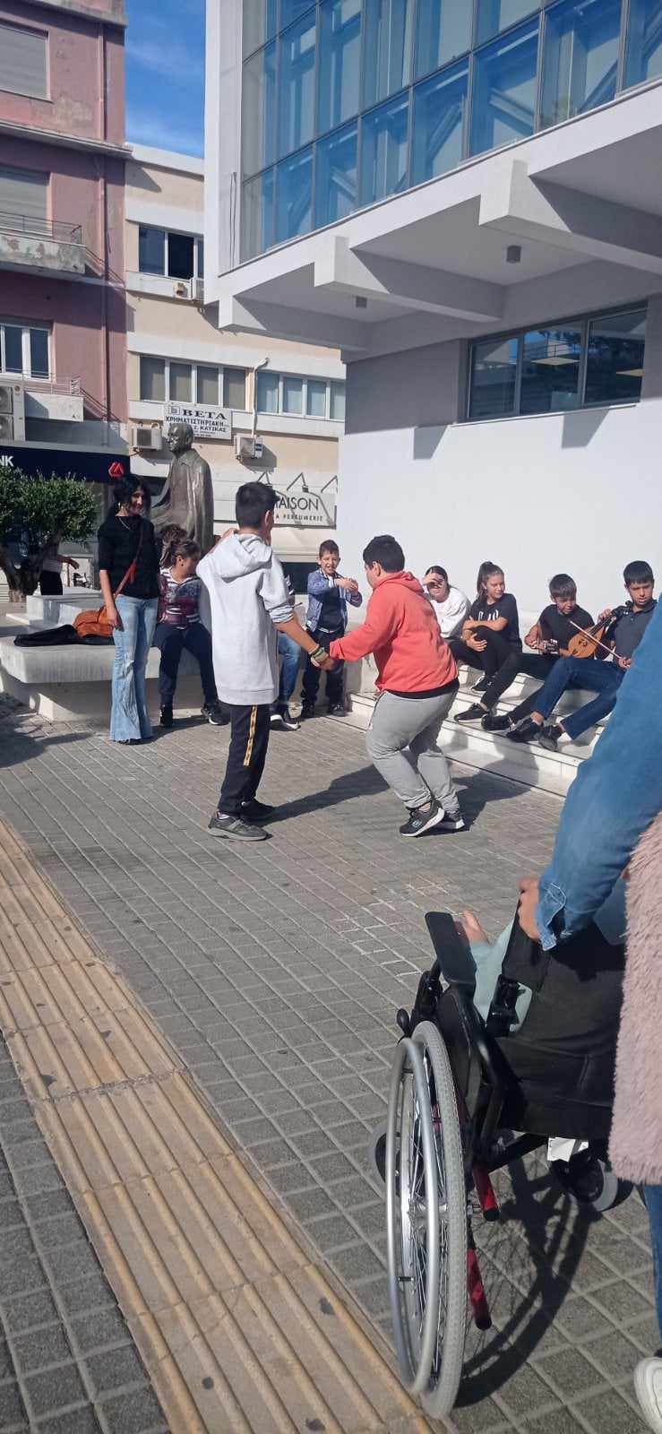 Η πρώτη από αυτές τις δράσεις ήταν η εκδήλωση της Παρασκευής που με ένα πανό, μουσική, χορό και ενημερωτικό υλικό, οι μαθητές των δύο σχολείων κατάφεραν να στείλουν το μήνυμα για την υπεράσπιση των δικαιωμάτων των Ατόμων με Αναπηρία, ζητώντας ένα κόσμο πιο δίκαιο, πιο φιλικό, προσβάσιμο για όλους και σε όλα τα επίπεδα της καθημερινότητας και της ζωής.