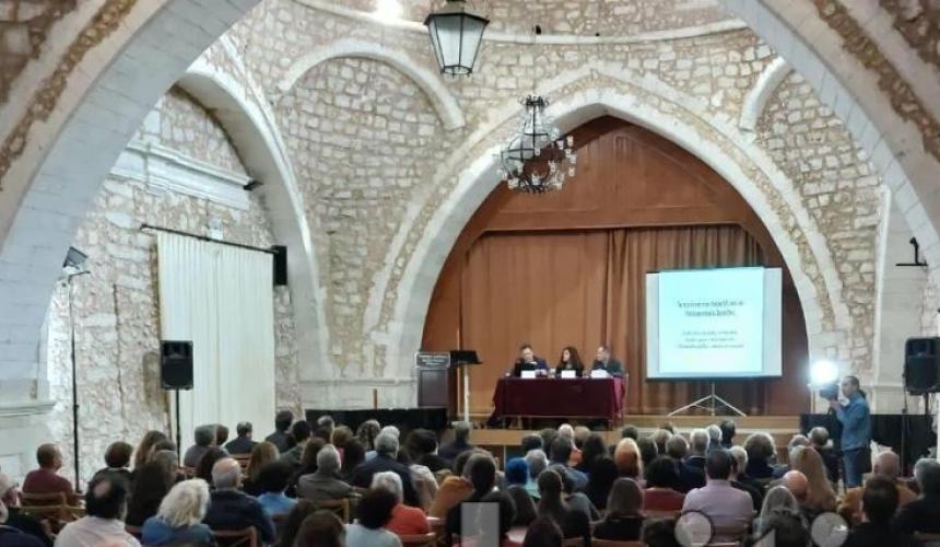 Με μεγάλη συμμετοχή πραγματοποιήθηκε το πρωί του Σαββάτου στο Ωδείο Ρεθύμνου (Νερατζέ Τζαμί) η εκδήλωση που διοργάνωσε ο τοπικός Δικηγορικός Σύλλογος με θέμα “Υπάρχει Ειρήνη χωρίς Δικαιοσύνη; Ο Πόλεμος στην Παλαιστίνη: Ιστορική, Πολιτική και Νομική Προσέγγιση μιας δραματικής ανάφλεξης”.