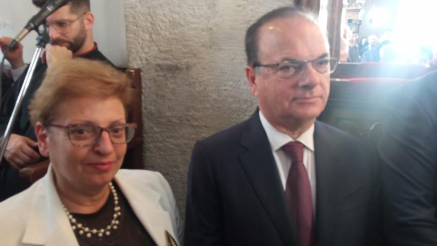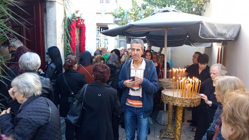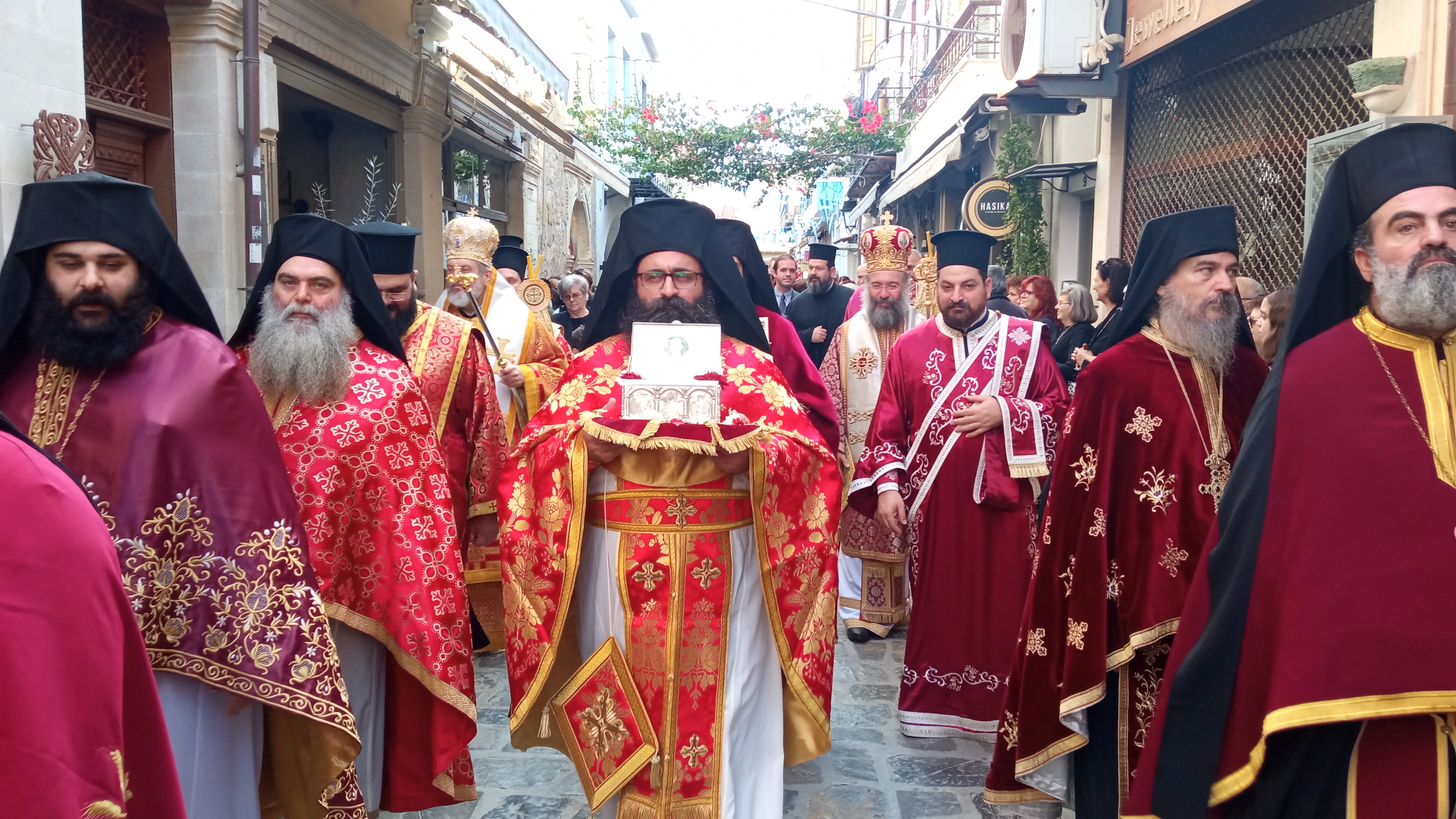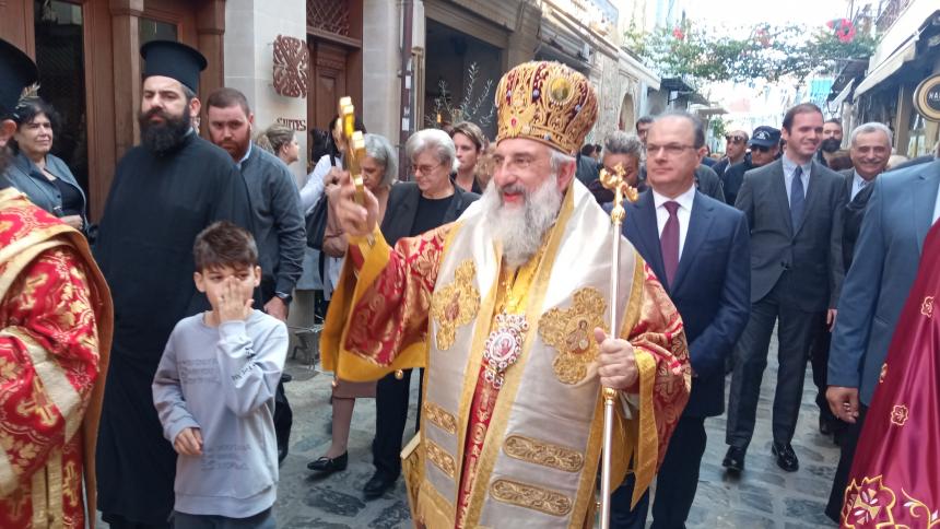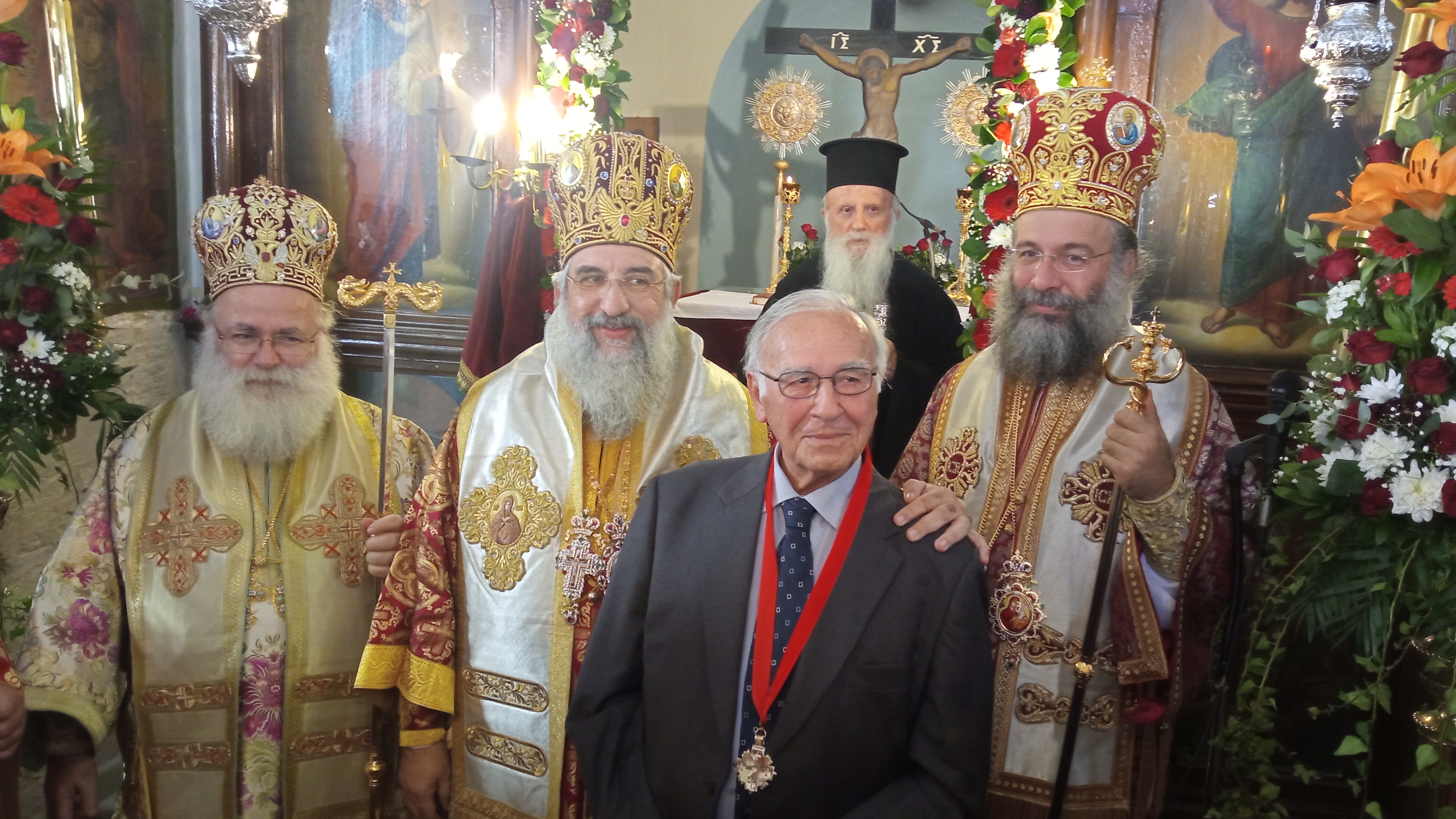 Στο τέλος της Θείας Λειτουργίας ο Αρχιεπίσκοπος Κρήτης, εκ μέρους της Ιεράς Συνόδου της Επαρχειακής Εκκλησίας Κρήτης, τίμησε με την Ανώτατη Διάκριση της τοπικής εκκλησίας, τον Σταυρό του Αποστόλου Τίτου, τον Ομότιμο Καθηγητή του Πανεπιστημίου Κρήτης, ερευνητή, συγγραφέα, λόγιο και πρώην Πρόεδρος της Ιστορικής και Λαογραφικής Εταιρείας Ρεθύμνου κ. Νικόλαο Παπαδογιαννάκη.