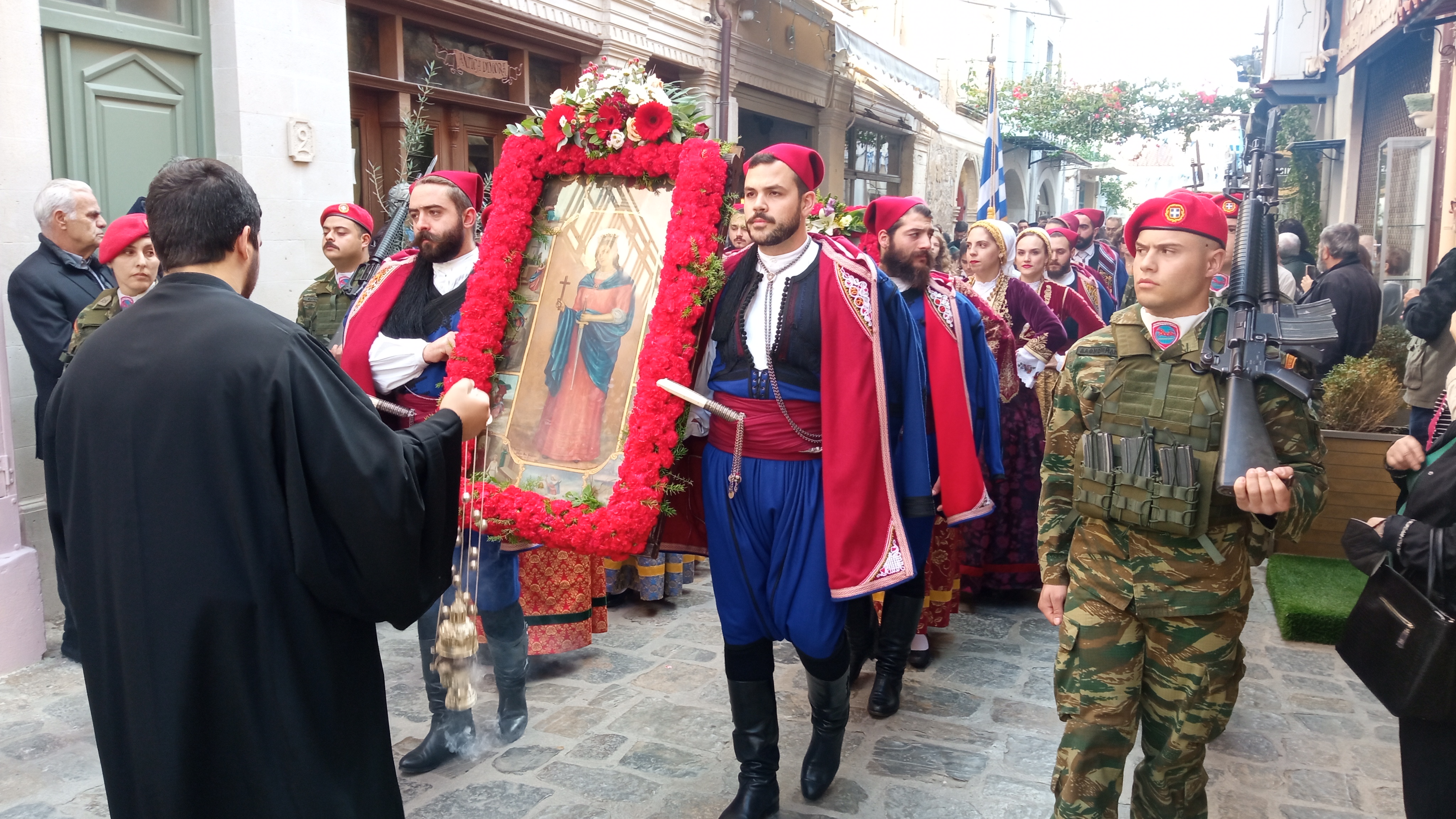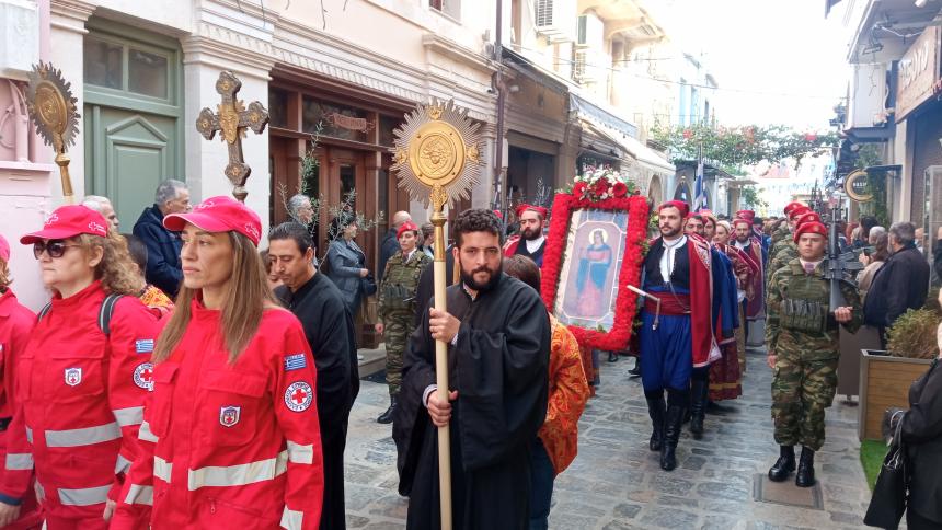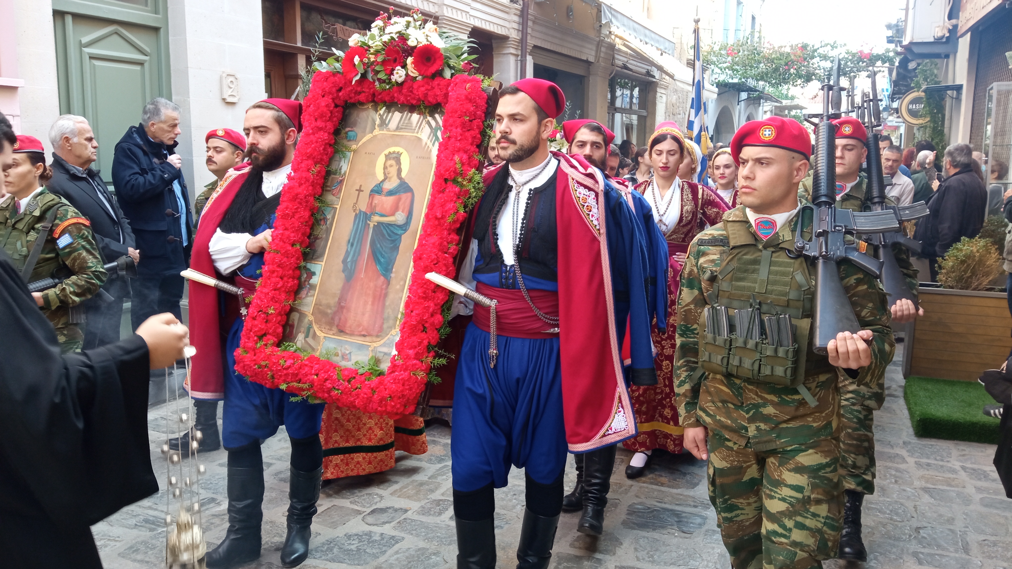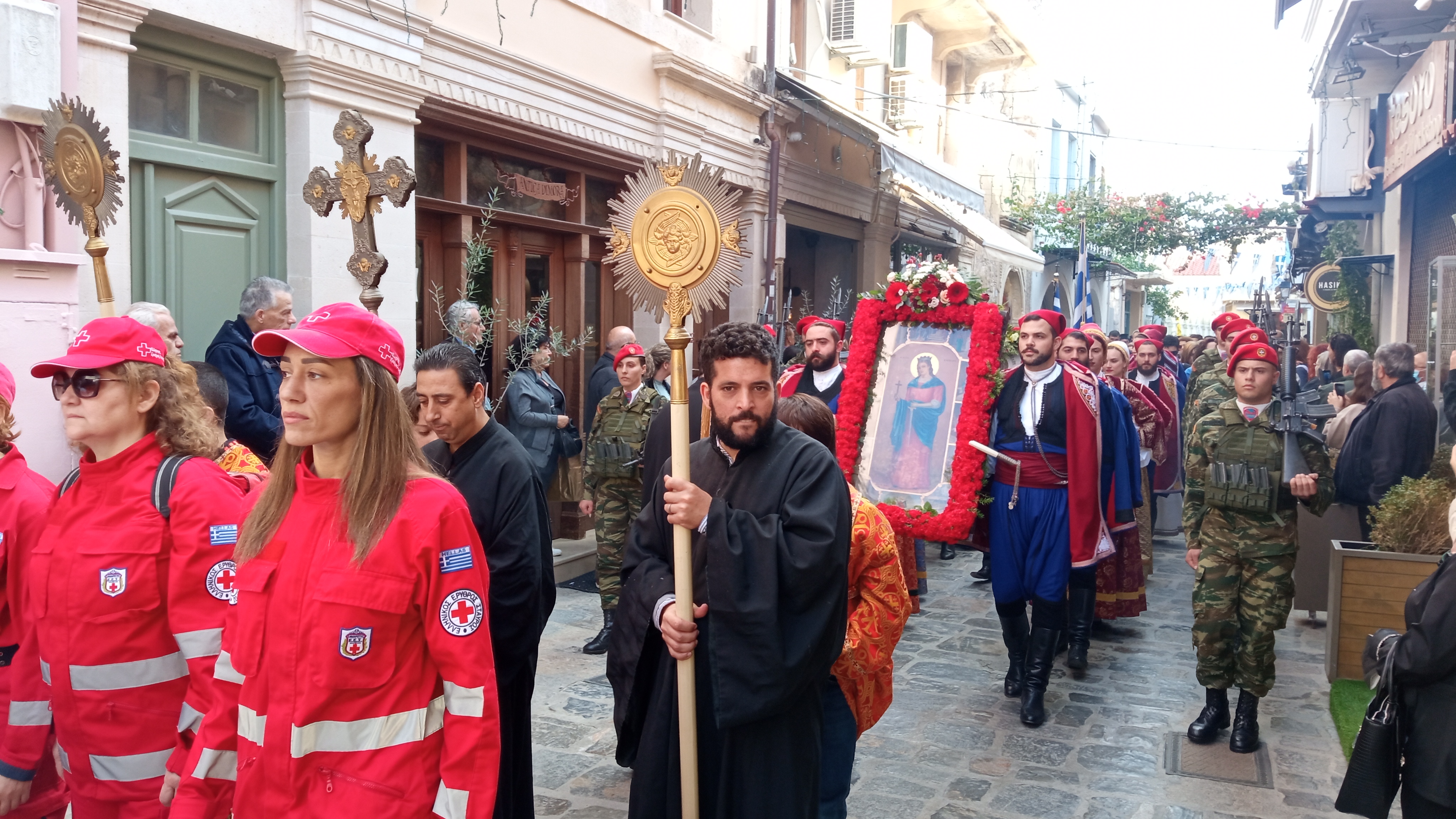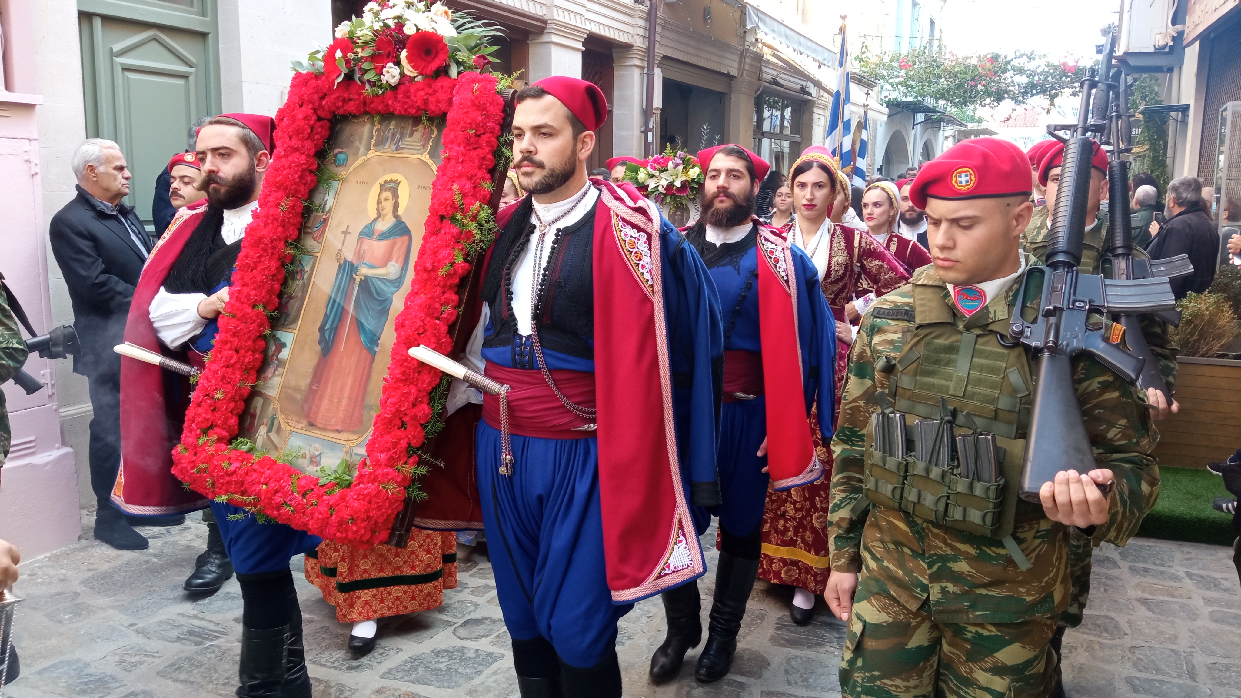 Ακολούθησε η λιτάνευση της Ιεράς Εικόνας της Αγίας Βαρβάρας στους κεντρικούς δρόμους της πόλης. Την εικόνα συνόδευσαν τιμητικά αγήματα του Λαογραφικού Ομίλου "Τζανιδάκη", ο Λαογραφικός όμιλος "ΑΚΡΗΤΕΣ", Άγημα του Στρατού, του Ερυθρού Σταυρού και η Φιλαρμονική του Δήμου Ρεθύμνου.