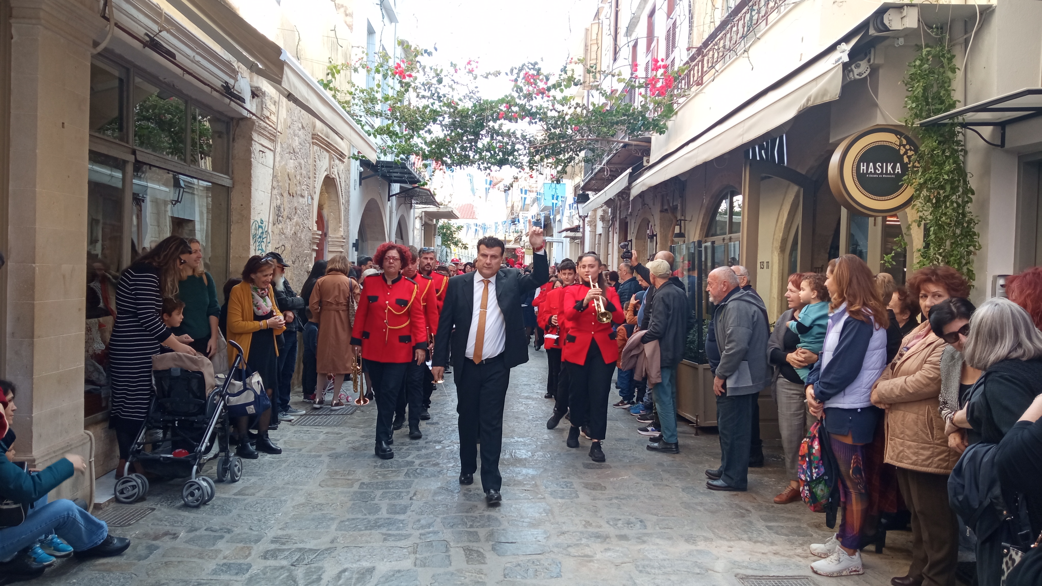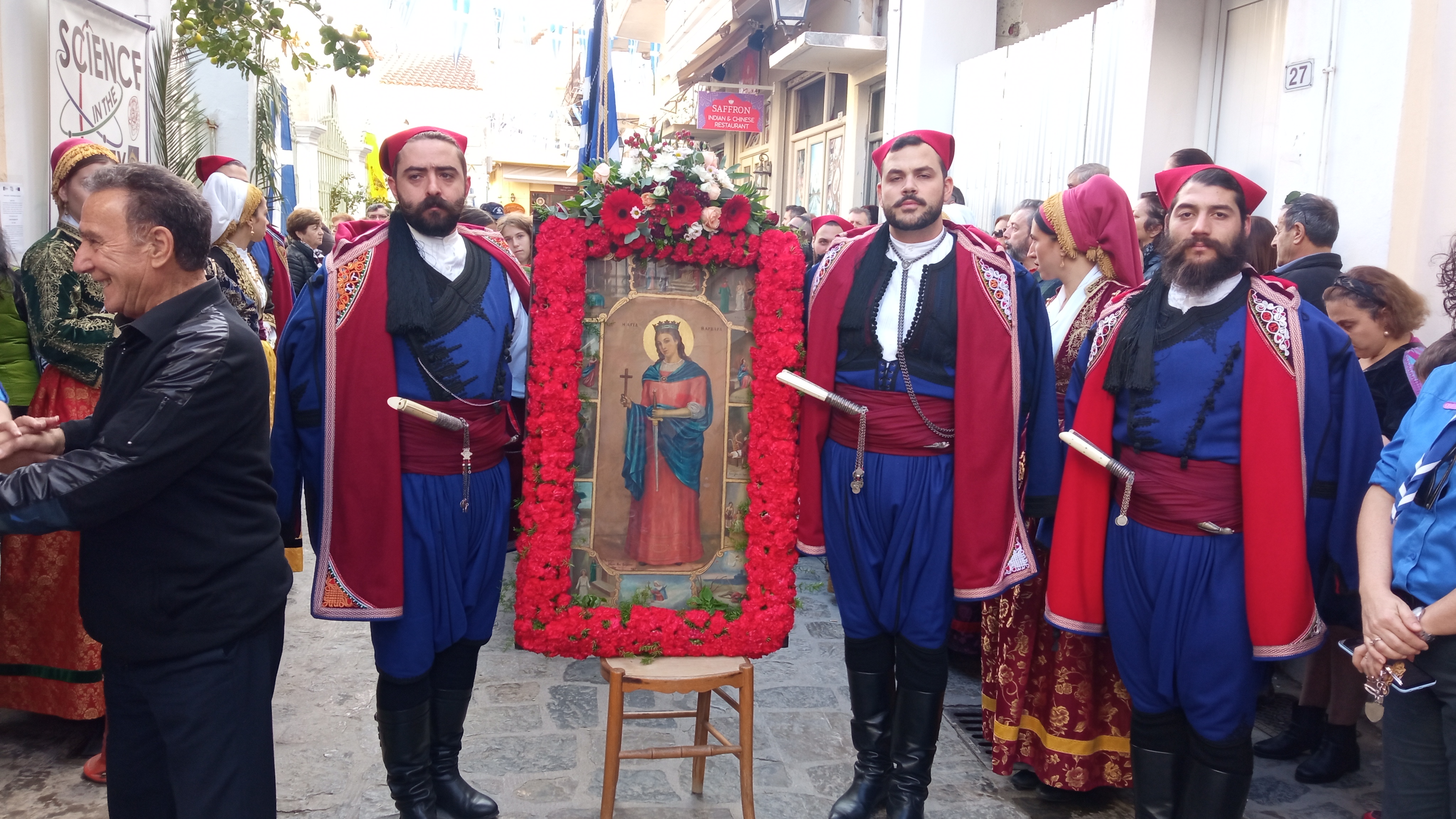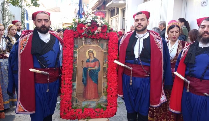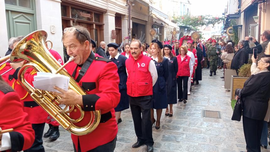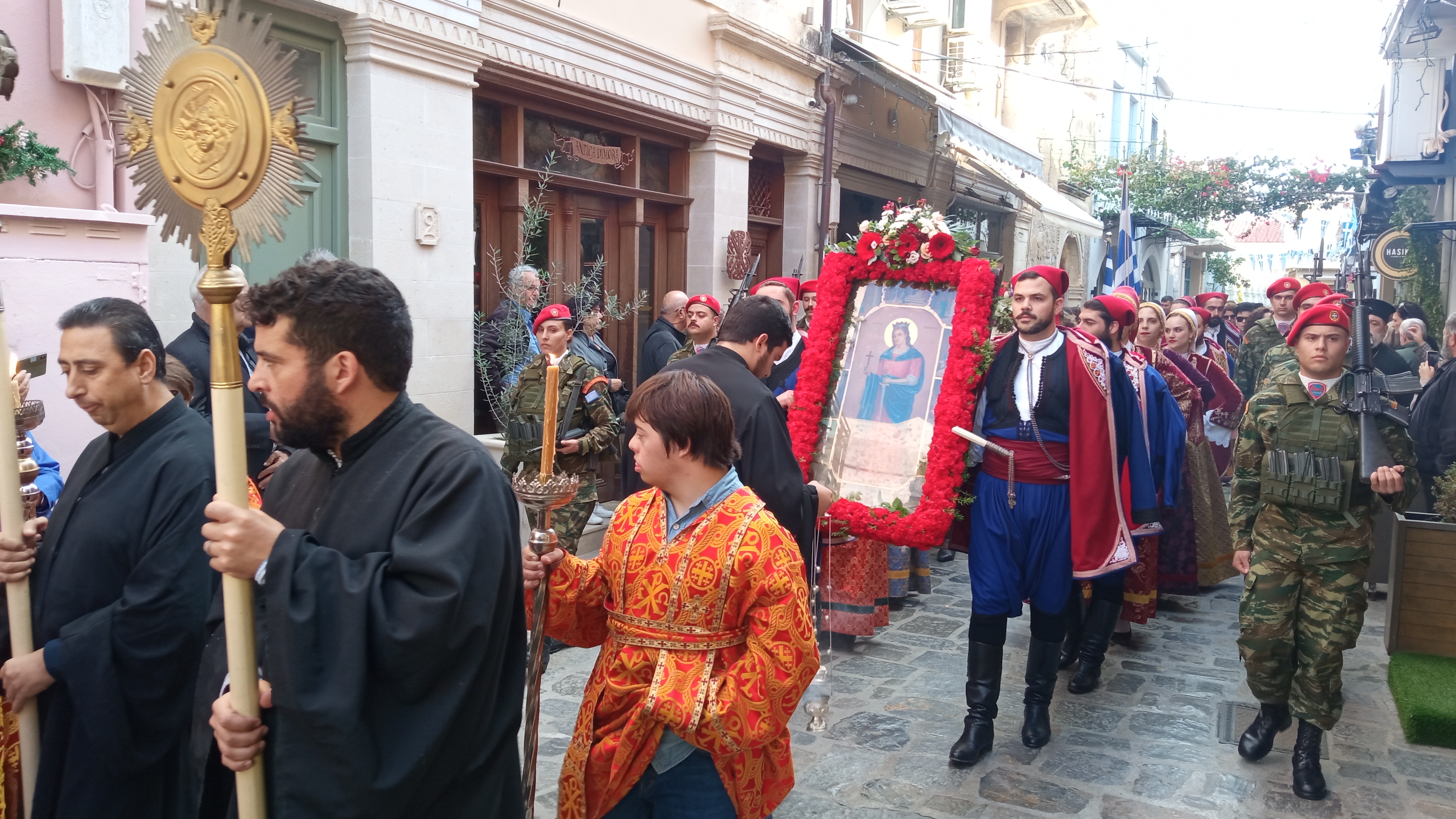 Ακολούθησε η λιτάνευση της Ιεράς Εικόνας της Αγίας Βαρβάρας στους κεντρικούς δρόμους της πόλης. Την εικόνα συνόδευσαν τιμητικά αγήματα του Λαογραφικού Ομίλου "Τζανιδάκη", ο Λαογραφικός όμιλος "ΑΚΡΗΤΕΣ", Άγημα του Στρατού, του Ερυθρού Σταυρού και η Φιλαρμονική του Δήμου Ρεθύμνου.