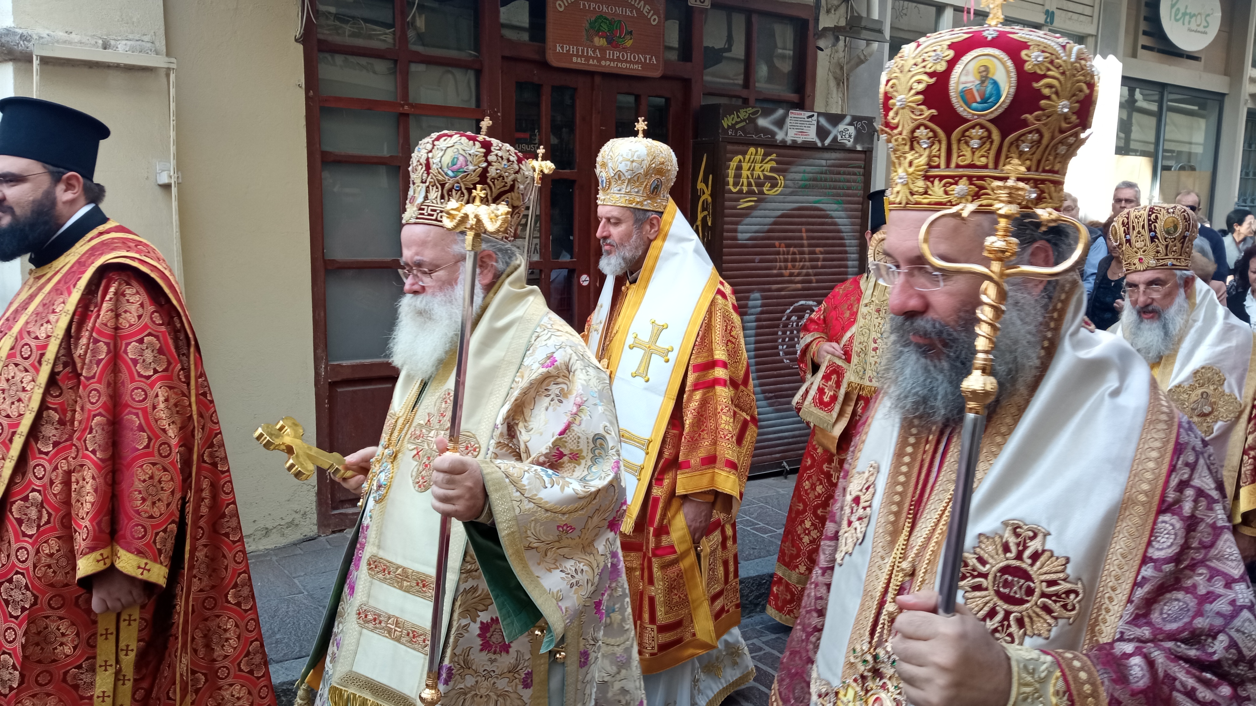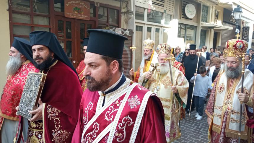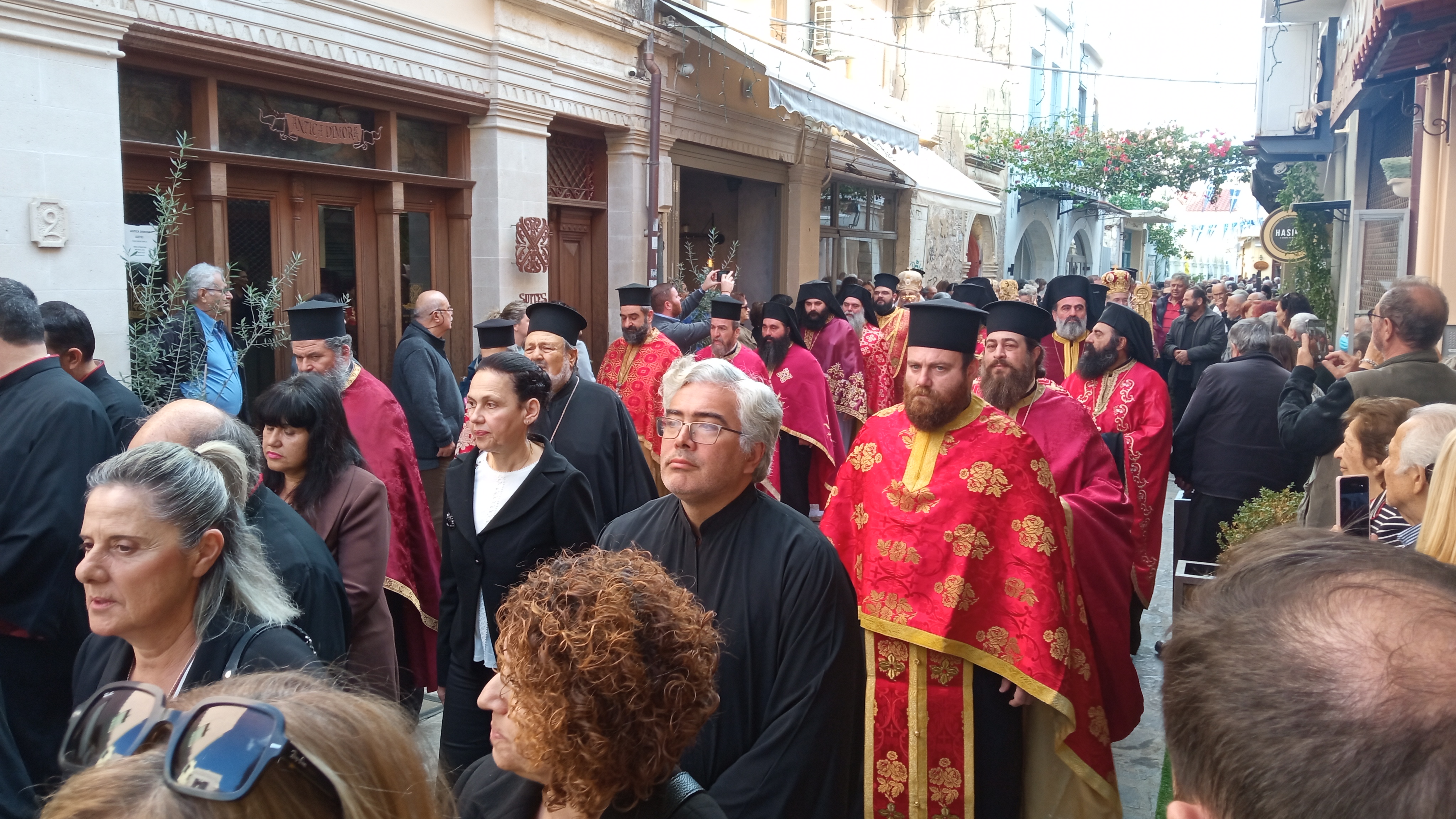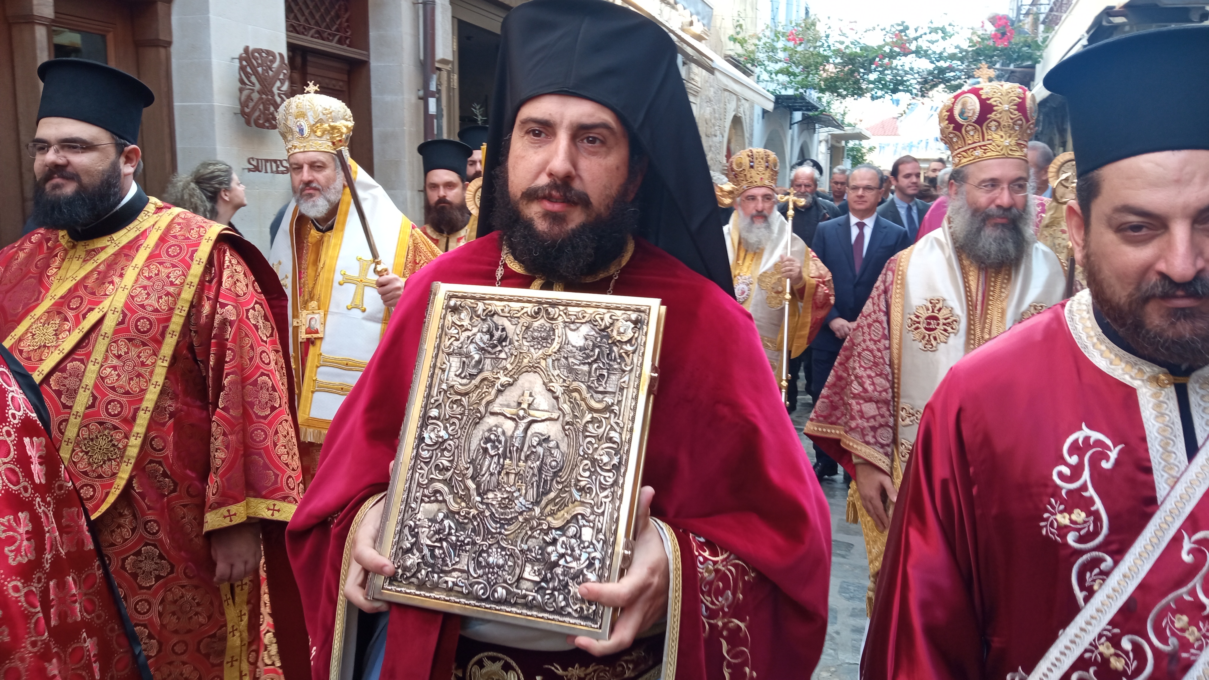 Των Ιερών Τελετών που πραγματοποιήθηκαν στον ιστορικό Ιερό Ναό της Αγίας Βαρβάρας στο ιστορικό κέντρο του Ρεθύμνου προεξήρχε ο Σεβασμιώτατος Αρχιεπίσκοπος Κρήτης κ.κ. Ευγένιος συμπαραστεκούμενος από τους Σεβασμιωτάτους Μητροπολίτες Ρεθύμνης και Αυλοποτάμου κ. Πρόδρομο, Ιεραπύτνης και Σητείας κ. Κύριλο και τον Θεοφιλέστατο Επίσκοπο Βαβυλώνος του Πατριαρχείου Αλεξανδρείας κ. Θεόδωρο. Συμπροσευχόμενος παρέστη ο Σεβασμιώτατος Μητροπολίτης Λάμπης, Συβρίτου και Σφακίων κ. Ειρηναίος ενώ συμμετείχαν πλήθος κληρικών από όλη την Κρήτη, μεταξύ των οποίων ο Πρωτοσύγγελος της Μητροπόλεως Ιεραπύτνης και Σητείας κ. Αμβρόσιος και ο Πρωτοσύγγελος της Μητροπόλεως Λάμπης, Συβρίτου και Σφακίων κ. Αθανάσιος.