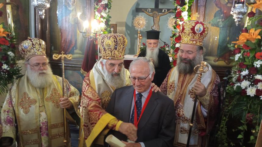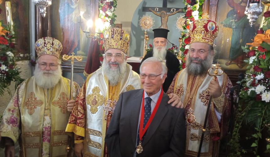 Η απονομή της Ανώτατης Διάκρισης της Εκκλησίας της Κρήτης, του Σταυρού του Αποστόλου Τίτου, έγινε από τον Αρχιεπίσκοπο κ.κ. Ευγένιο, ο οποίος μίλησε με επαινετικά λόγια για τον τιμώμενο. Αντιστοίχως αναφέρθηκε με θερμά λόγια ο Μητροπολίτης Ρεθύμνης και Αυλοποτάμου κ. Πρόδρομος ενώ συγκινημένος αντιφώνησε ο τιμώμνος καθηγητής.