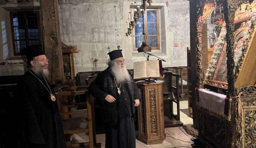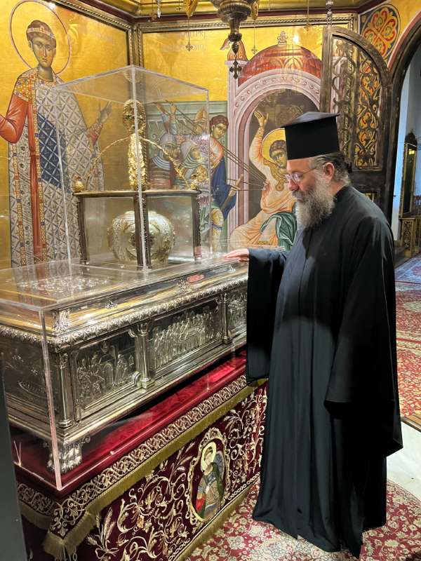 Στο πλαίσιο της παραμονής στη Βόρειο Ελλάδα, για τη συμμετοχή του στην Πανήγυρι του Ιερού Καθεδρικού Αγίου Νικολάου Αρετσούς της Ιεράς Μητροπόλεως Νέας Κρήνης και Καλαμαριάς, ο Σεβασμιώτατος Μητροπολίτης Ρεθύμνης και Αυλοποτάμου κ. Πρόδρομος είχε την ευκαιρία να επισκεφθεί προσκυνηματικά, κατόπιν ευγενούς προσκλήσεως του Σεβασμιωτάτου Μητροπολίτου Γουμενίσσης, Αξιουπόλεως και Πολυκάστρου κ. Δημητρίου, την εν λόγω Ιερά Μητρόπολη.