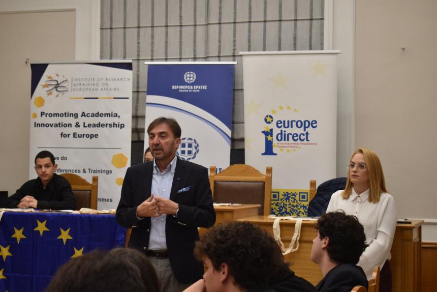 Το Πειραματικό Λύκειο Ρεθύμνου συμμετείχε στις 9 και 10 Δεκεμβρίου 2023 στην Προσομοίωση του Ευρωπαϊκού Κοινοβουλίου που διοργανώθηκε από το Europe Direct της Περιφέρειας Κρήτης σε συνεργασία με το Ινστιτούτο Έρευνας και Κατάρτισης Ευρωπαϊκών Θεμάτων (I.R.T.E.A). Θέμα της προσομοίωσης ήταν: Συμμετοχική Δημοκρατία και Ευρωεκλογές 2024: «Ο ρόλος των νέων στη διαμόρφωση της Ευρώπης του μέλλοντος». Υπεύθυνες καθηγήτριες ήταν η Αμαλία Χόμπη, η Μαρία Μανιουδάκη και η Χαρά Ανάγνου και οι μαθητές που συμμετείχαν ήταν η Κατερίνα Ignat, η Μαρία Σαββάκη, η Ειρήνη Σηφακάκη, η Κατερίνα Ξηρογιάννη και ο Δημήτρης Ροδινός.