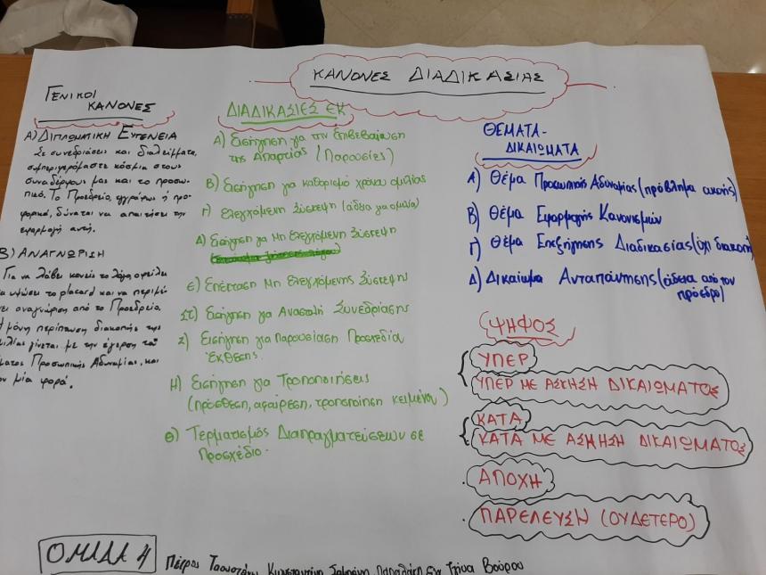 Το βασικό θέμα που κυριάρχησε και πάνω στο οποίο αντάλλαξαν απόψεις ήταν οι λόγοι για τους οποίους οι νέοι απαξιώνουν την Ευρωπαϊκή Ένωση και απέχουν από τις διαδικασίες λήψης αποφάσεων, όπως είναι οι Ευρωεκλογές. Στην πρώτη συνεδρίαση έγινε προετοιμασία των μαθητών για την προσομοίωση, ορίστηκαν οι κανόνες της και αποτυπώθηκαν σχεδιαγραμματικά σε flipcharts (πίνακες παρουσιάσεων). Στη δεύτερη συνεδρίαση, η οποία αποτελούσε και το βασικό τμήμα της προσομοίωσης, οι μαθητές έκαναν τοποθετήσεις σχετικά με τις αιτίες του προβλήματος και αναζήτησαν λύσεις. Τη δεύτερη μέρα, στην τρίτη συνεδρίαση προτάθηκαν λύσεις, οι οποίες συζητήθηκαν και από αυτές προέκυψε ένα κοινό νομικό κείμενο κάθε άρθρο του οποίου ψηφίστηκε από την ολομέλεια.