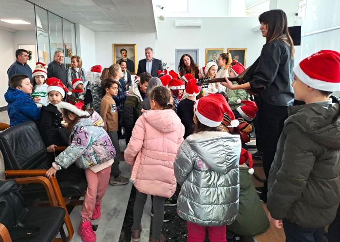 Με καθάρια φωνή και ψυχή, με θαυμαστό συγχρονισμό και εξαιρετικό συντονισμό οι 45 χαριτωμένοι μαθητές και μαθήτριες της Β’ τάξης του 5ο Δημοτικού Σχολείου Ρεθύμνου, έψαλλαν τα κάλαντα στον δημαρχεύοντα Αντιδήμαρχο κ. Στέλιο Σπανουδάκη και στους εργαζόμενους του Δήμου.