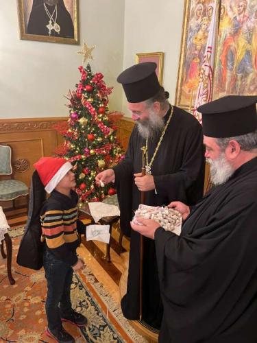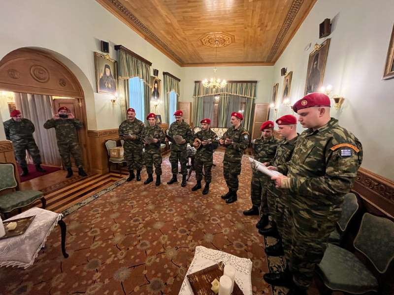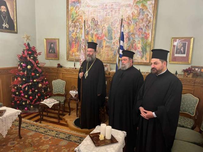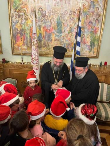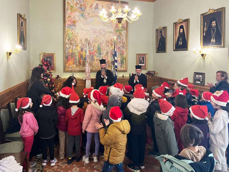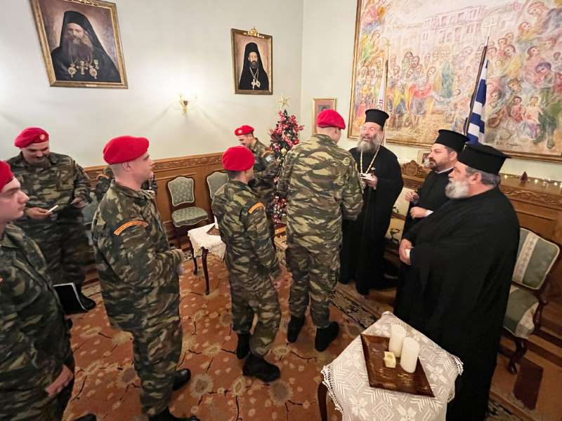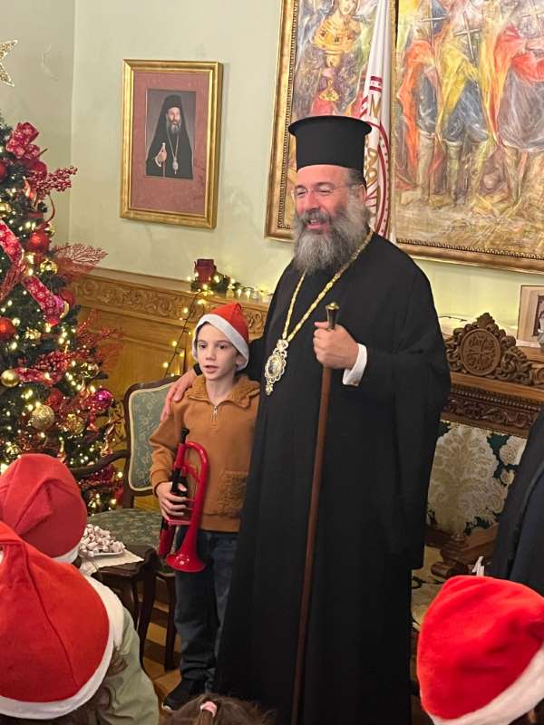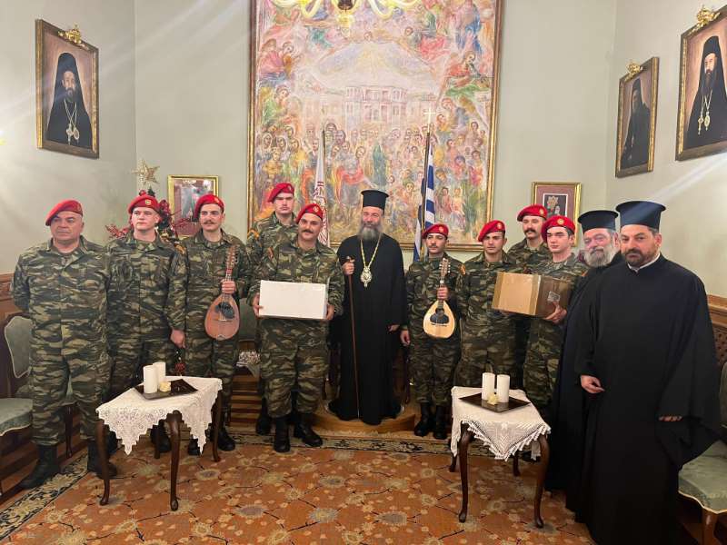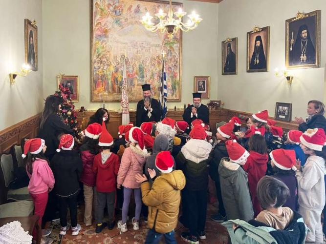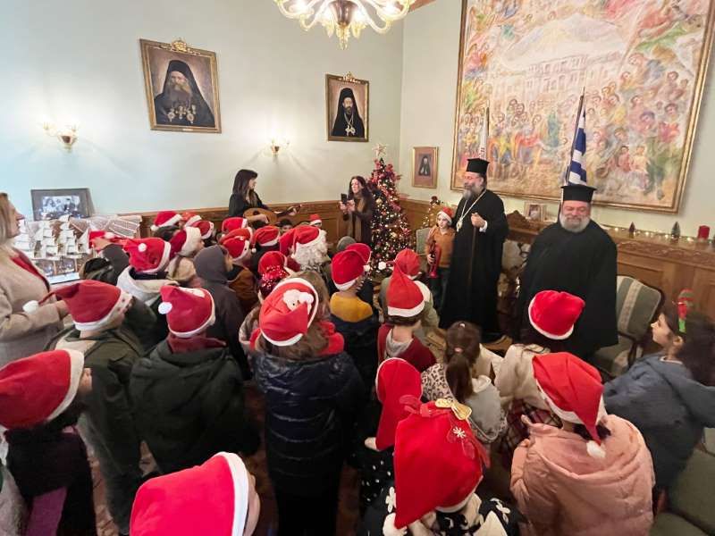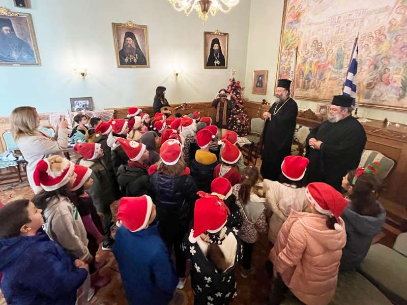 Επίσης, την Πέμπτη, 21η Δεκεμβρίου 2023, ο Σεβασμιώτατος Μητροπολίτης μας κ. Πρόδρομος είχε τη χαρά να δεχθεί αντιπροσωπεία από τα στρατευμένα νιάτα της Πατρίδας μας που υπηρετούν στα Στρατόπεδα του Ρεθύμνου, οι οποίοι έψαλαν τα παραδοσιακά κάλαντα των Χριστουγέννων, και στη συνέχεια μαθητές του 5ου Δημοτικού Σχολείου Ρεθύμνου.