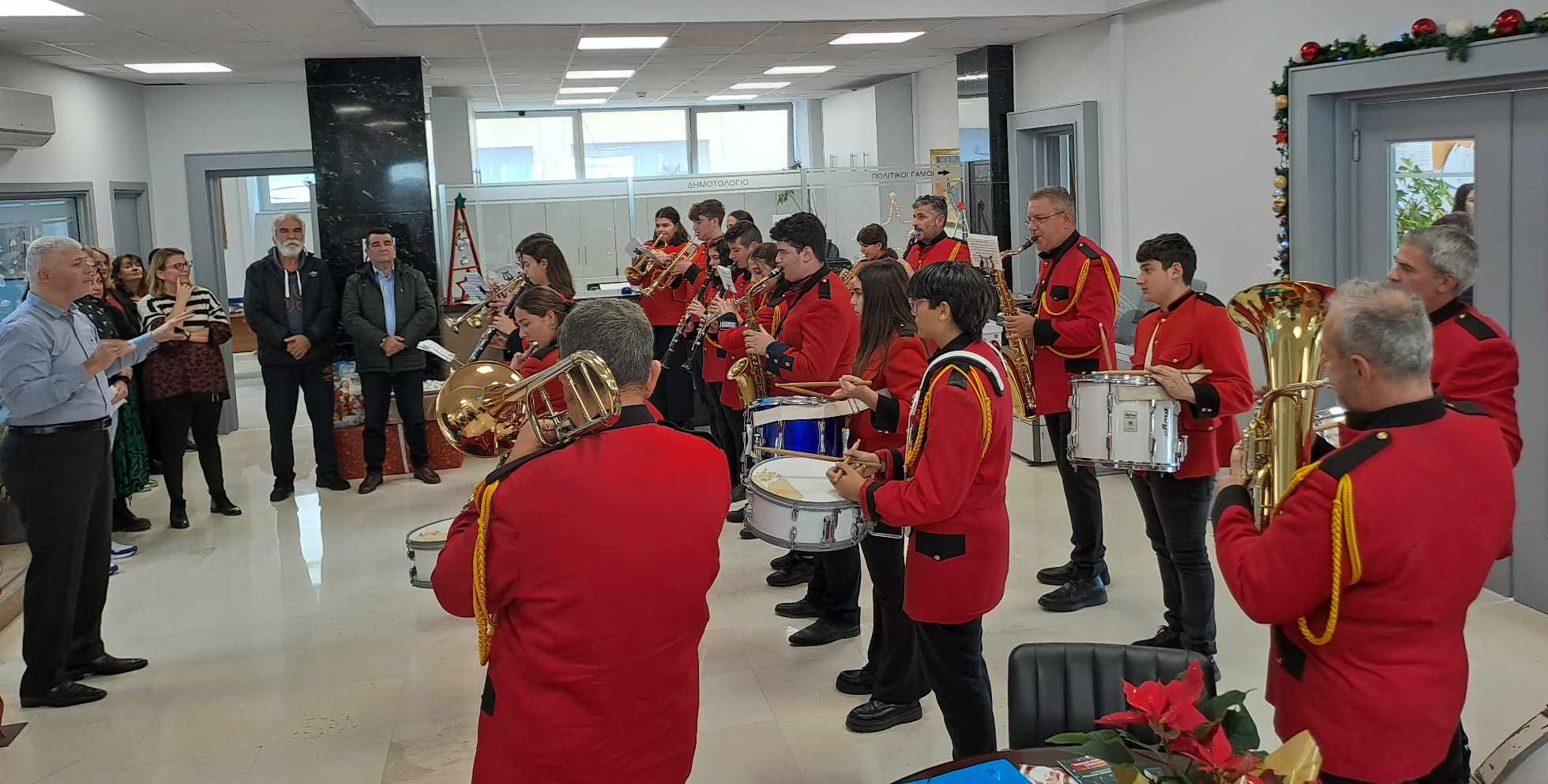 Στη συνέχεια, όπως κάθε χρόνο, οι ταλαντούχοι μουσικοί της Δημοτικής Φιλαρμονικής Ρεθύμνου, υπό την καλλιτεχνική διεύθυνση του Αρχιμουσικού κ. Στέλιου Αποστολάκη, συγκίνησαν με την αρμονία και τις υψηλές μουσικές τους δεξιότητες, τον Αντιδήμαρχο κ. Λελεδάκη, τον Δημ. Σύμβουλο κ. Μποτονάκη, τους δημοτικούς υπαλλήλους και τους συνδημότες που παρευρίσκονταν στο Δημαρχείο. Οι ποιοτικές επιδόσεις των Μουσικών της Δημοτικής Φιλαρμονικής, επιβεβαιώνουν κάθε φορά την ανοδική πορεία και τη θαυμαστή εξέλιξη της.