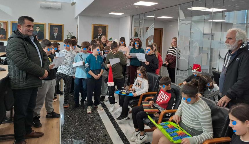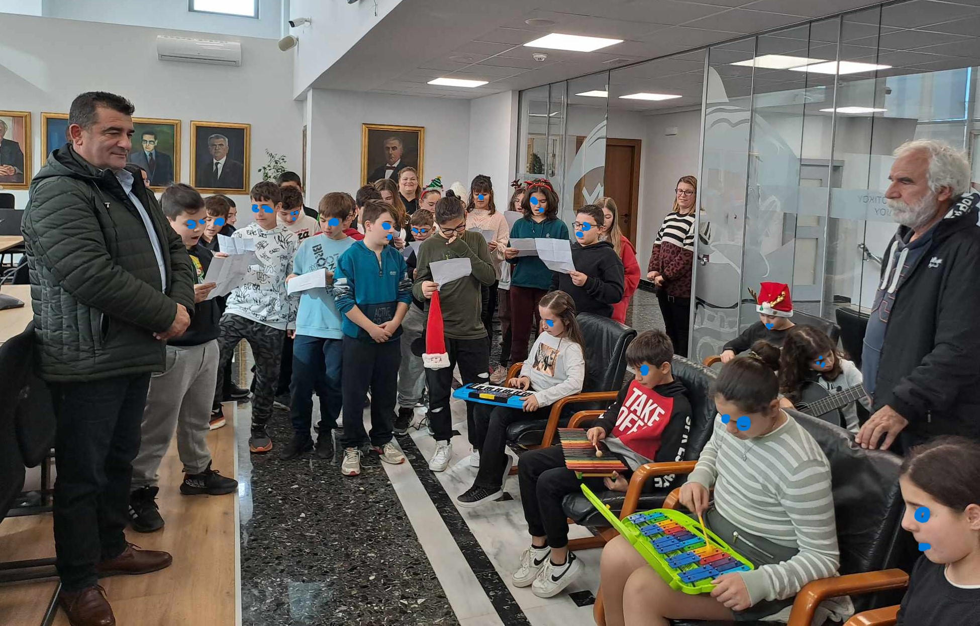 Την καλλιτεχνική… σκυτάλη πήραν οι μαθητές και μαθήτριες της Στ’ Τάξης του 7ου Δημοτικού Σχολείου, συνοδευόμενοι από τις εκπαιδευτικούς κ.κ. Εύα Γαλεράκη, Μαρία Βαλασσάκη και Νίκη Γκιώτση. Με μουσικά όργανα, κέφι, και εξαιρετικό συγχρονισμό μετέφεραν το πνεύμα των Χριστουγέννων στην αίθουσα του Δ.Σ, απηύθυναν με ευγένεια και ευφράδεια ένα ευγενικό, ευχαριστήριο μήνυμα στον Αντιδήμαρχο για την καθαριότητα της πόλης και την φροντίδα του περιβάλλοντος και τον ενημέρωσαν για τη διάκριση που πέτυχε το σχολείο τους, καταλαμβάνοντας την 3η θέση σε όλη την Ελλάδα (μετά την Αθήνα και τη Θεσσαλονίκη) στον Πρόγραμμα ανακύκλωσης μπαταριών επιτυγχάνοντας να συλλέξουν μέσα σε ένα χρόνο ένα τόνο μπαταρίες.