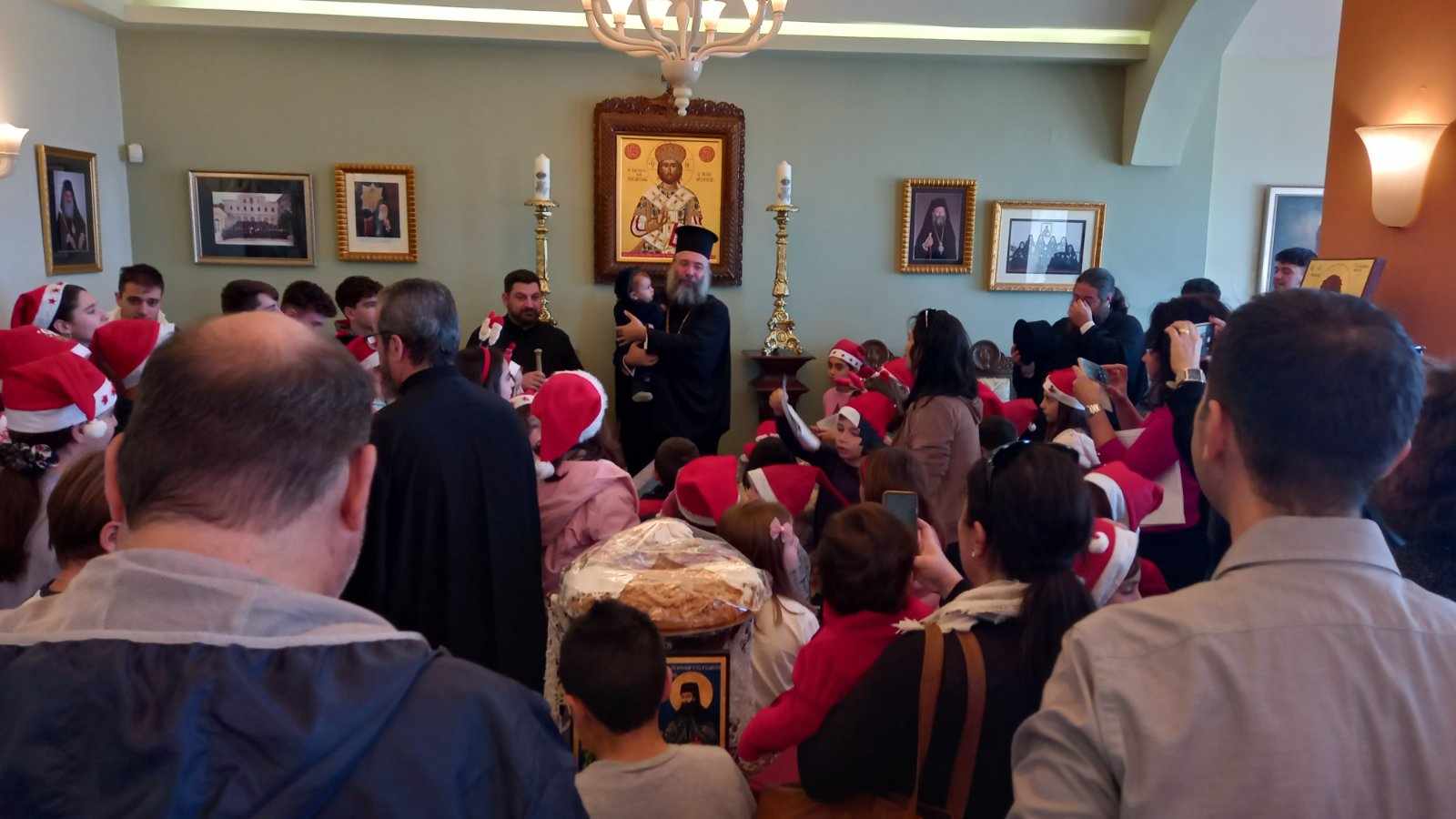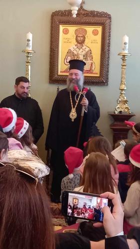 Τα παιδιά επισκέφθηκαν τον Σεβασμιώτατο στο Επισκοπικό Μέγαρο της παλιάς πόλης συνοδευόμενα από τους εφημερίους των ενοριών και αφού έψαλαν τα κάλαντα, αντάλλαξαν ευχές και δώρα.