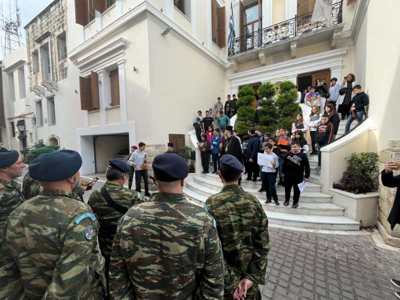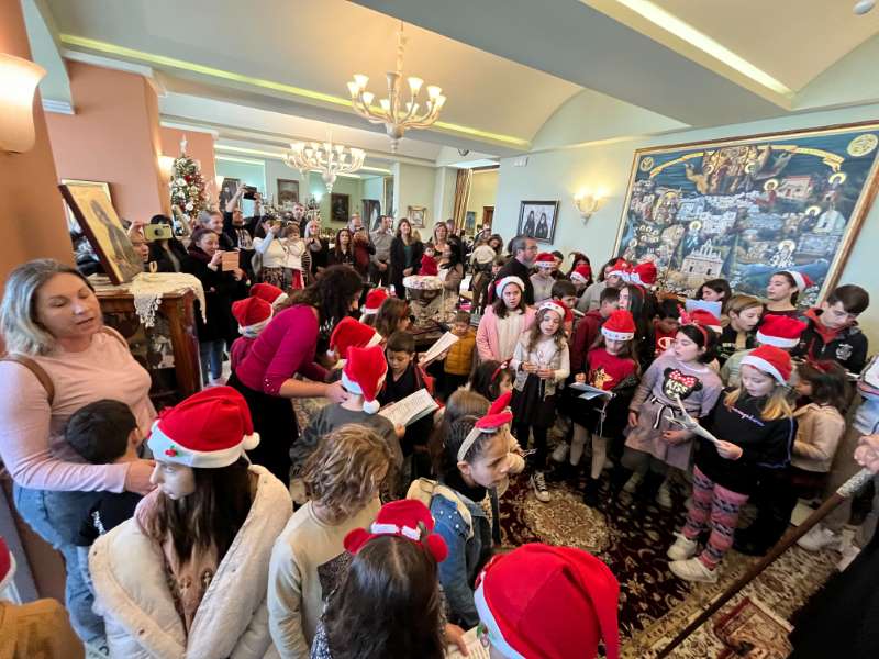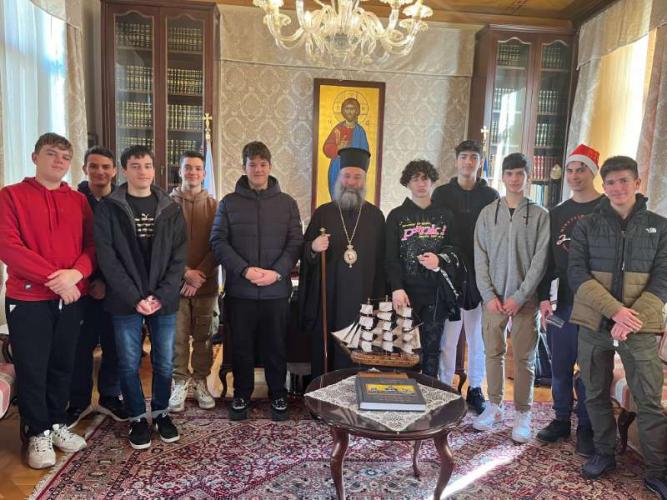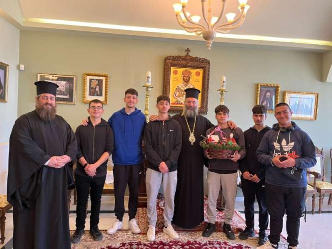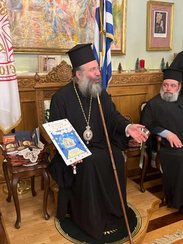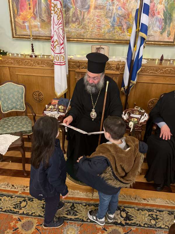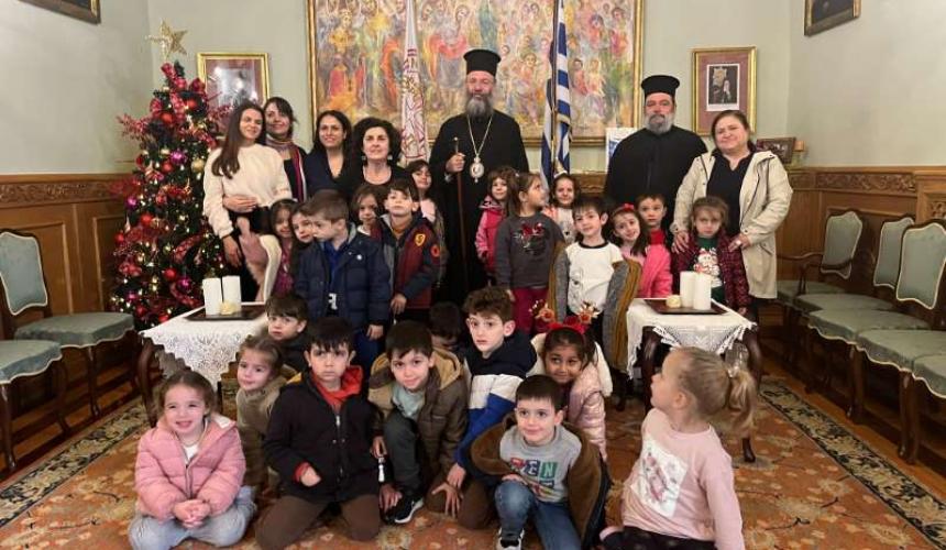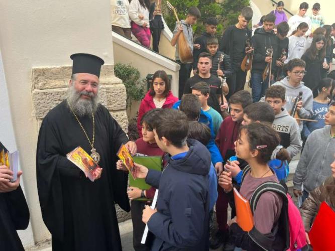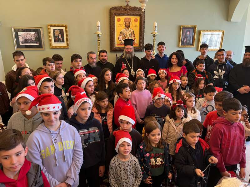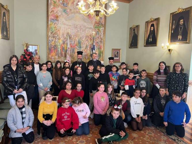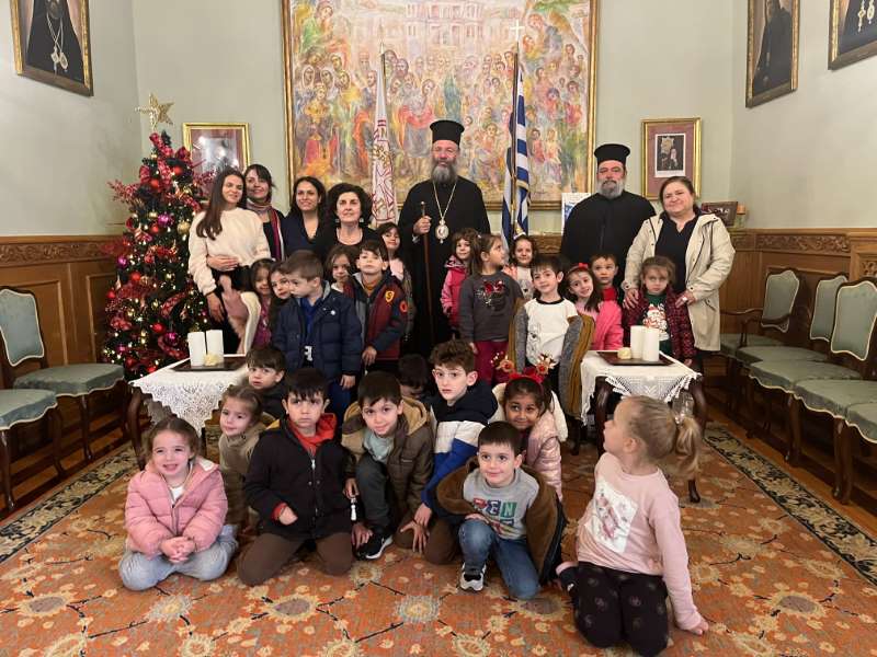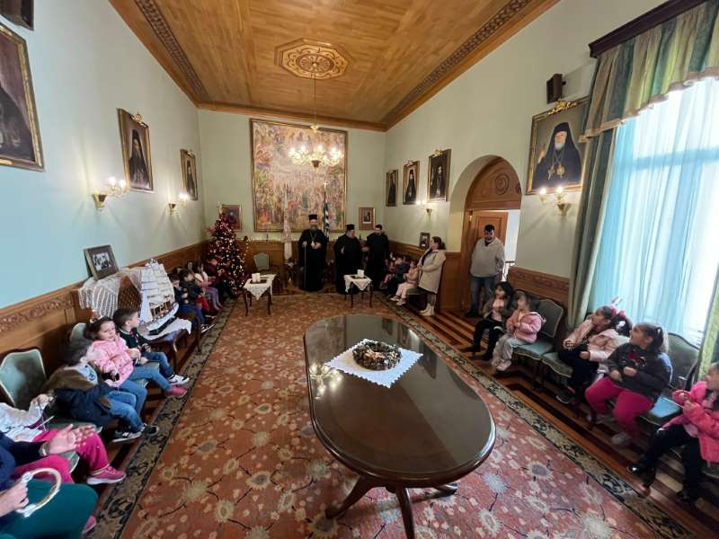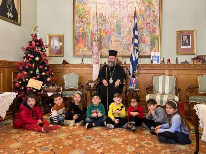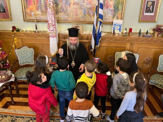 Με ιδιαίτερη χαρά ο Σεβασμιώτατος Ποιμενάρχης μας υποδέχθηκε όλα τα μικρά παιδιά και τους νέους, από τα Νηπιαγωγεία, Δημοτικά Σχολεία, Γυμνάσια και Λύκεια του Ρεθύμνου, που προσήλθαν, με τη συνοδεία των Εκπαιδευτικών, Διδασκάλων και Καθηγητών τους, έψαλαν τα καθιερωμένα κάλαντα των Χριστουγέννων και αντάλλαξαν ευχές για τις ημέρες αυτές.