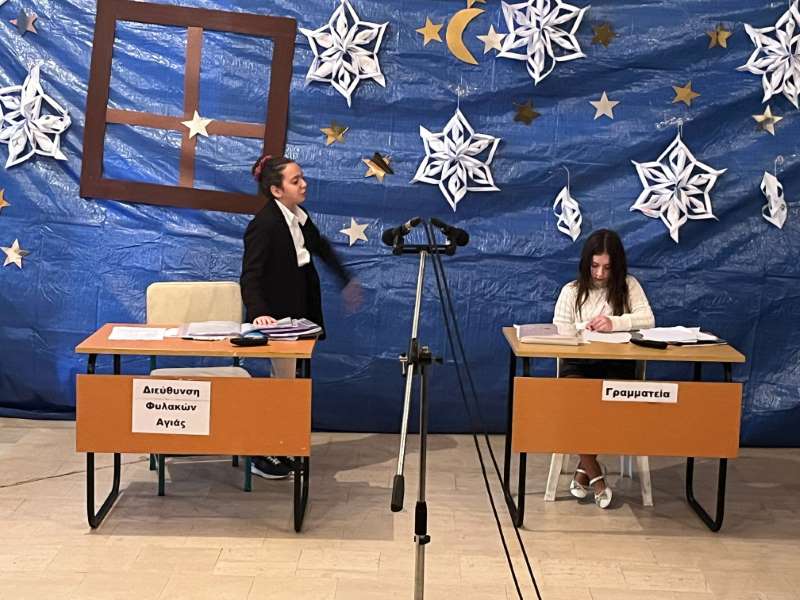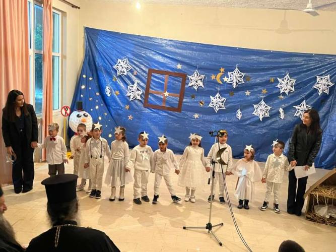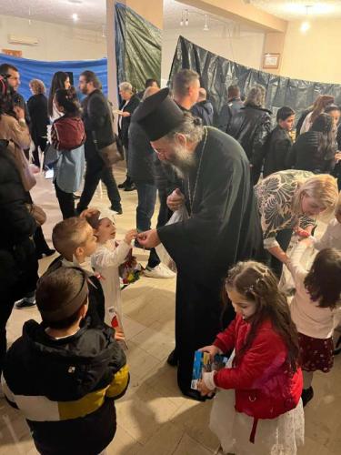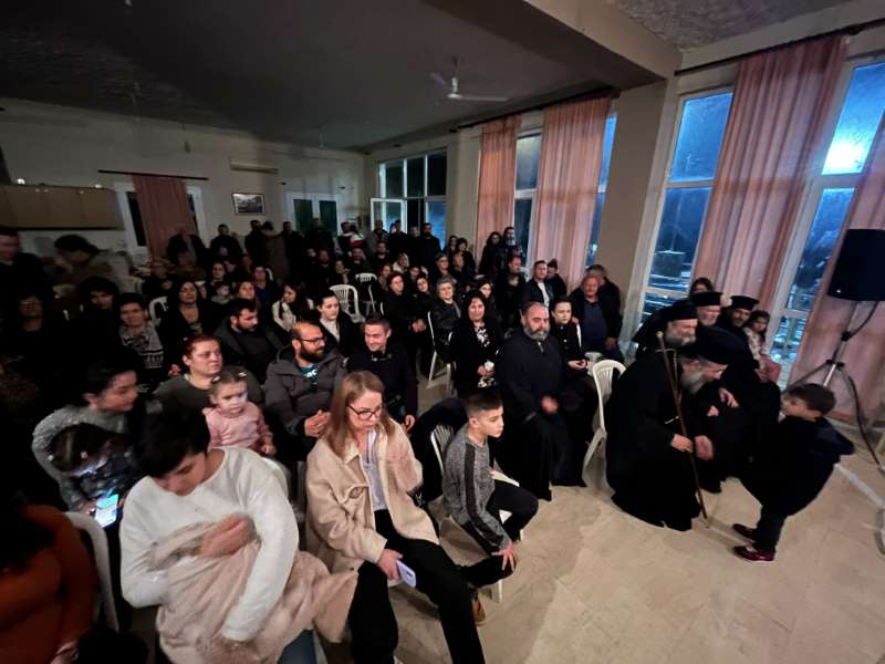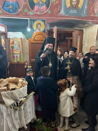 Μετά το πέρας του Εσπερινού, ο Σεβασμιώτατος μετέβη στην αίθουσα του Πολιτιστικού Συλλόγου της Αγιάς, όπου, μαζί με πλήθος ανθρώπων, παρακολούθησε την χριστουγεννιάτικη εκδήλωση του Νηπιαγωγείου και του Δημοτικού Σχολείου του χωριού.