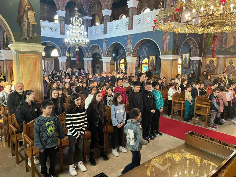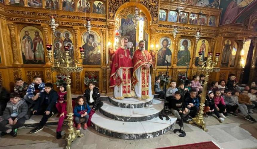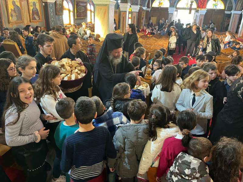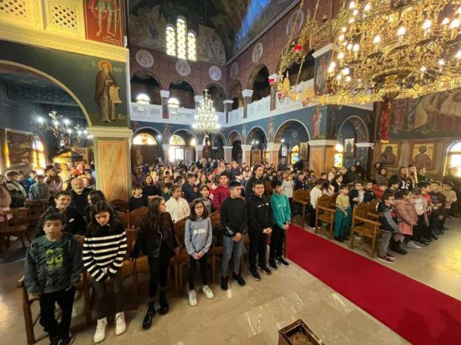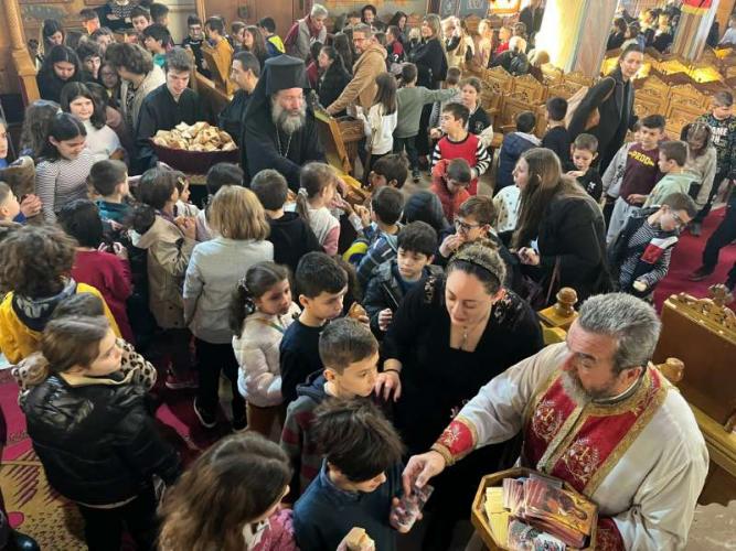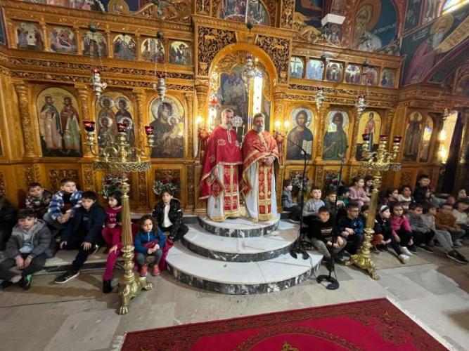 Μετά την απόλυση της Θείας Λειτουργίας, όλα τα παιδιά, σε ευφρόσυνο κλίμα, έψαλαν τα χριστουγεννιάτικα κάλαντα.