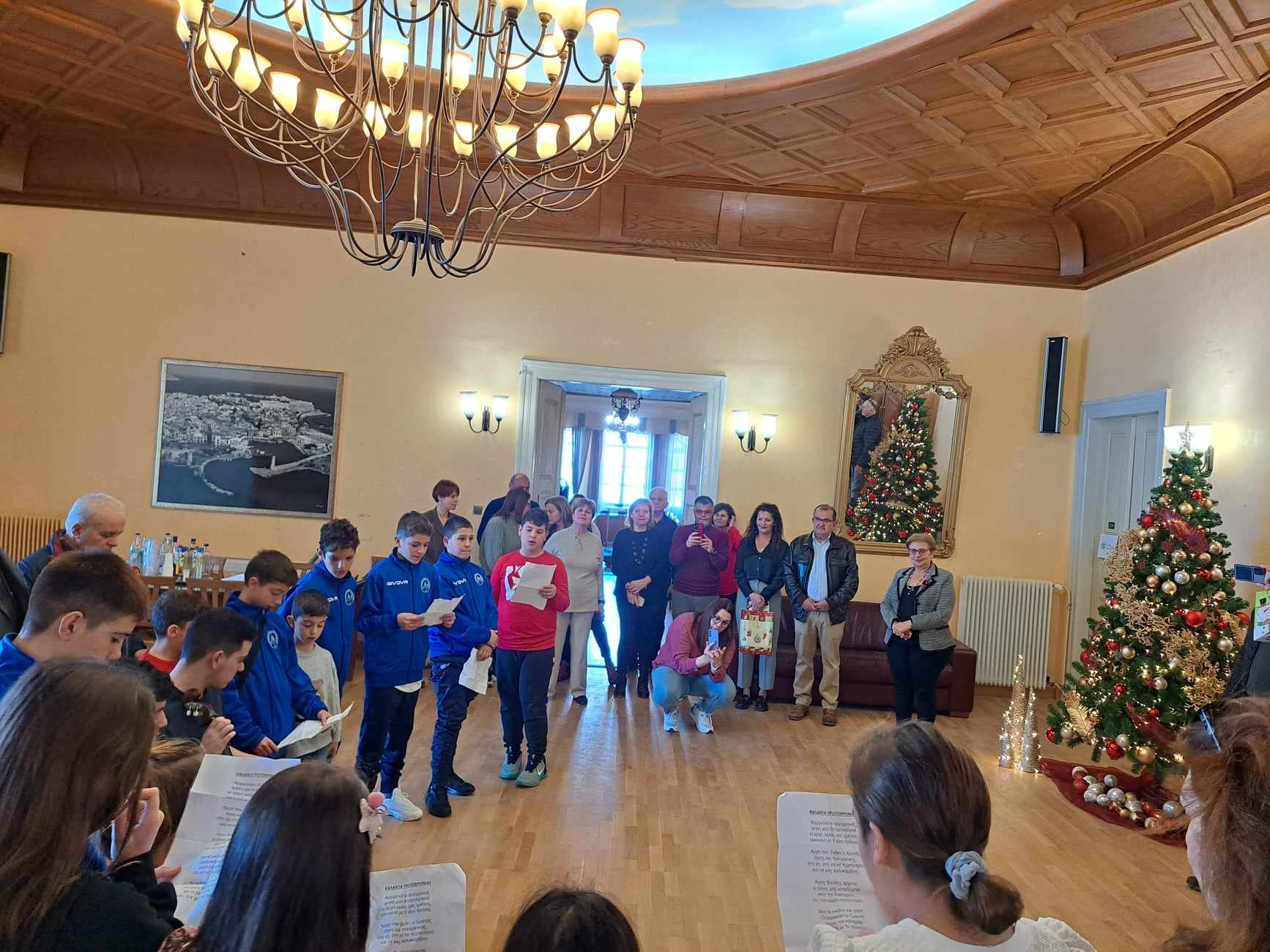 Με μελωδίες από τα Κάλαντα της Πρωτοχρονιάς γέμισε σήμερα το κτίριο της Περιφερειακής Ενότητας Ρεθύμνης, όπου η Αντιπεριφερειάρχης Ρεθύμνης, κα Μαρία Λιονή και τα στελέχη των Υπηρεσιών υποδέχτηκαν τον Όμιλο Βρακοφόρων Κρήτης και αντιπροσωπεία από την Τοπική Κοινότητα Γερανίου και αντάλλαξαν ευχές για υγεία και ευημερία το νέο χρόνο.