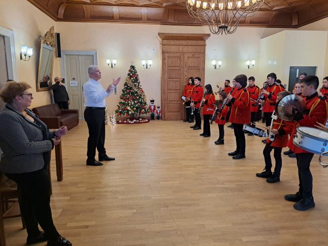 Η Μπάντα της Δημοτικής Φιλαρμονικής Ρεθύμνου έκανε χτες την καθιερωμένη επίσκεψή της στο κτίριο της Περιφερειακής Ενότητας Ρεθύμνης για τα Κάλαντα της Πρωτοχρονιάς.