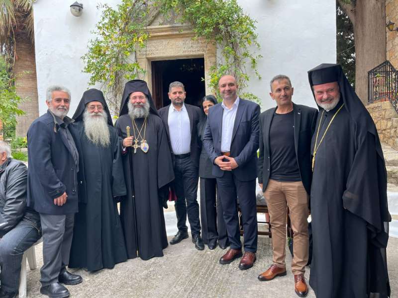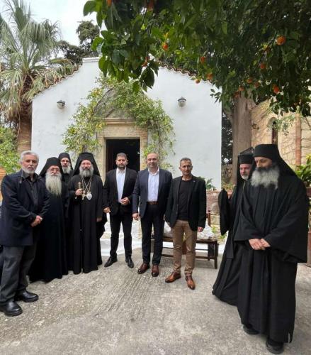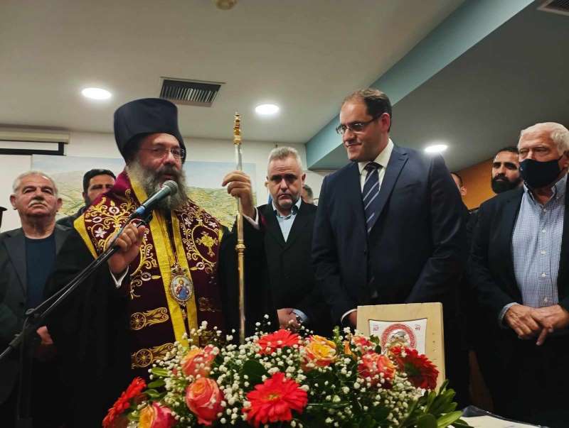 Επίσης, ο Σεβασμιώτατος προσέφερε, από πλευράς του Ιερού Μετοχίου, Ιερά Εικόνα του Οσιομάρτυρος Γεδεών του Καρακαλληνού στον παριστάμενο νέο Δήμαρχο Μυλοποτάμου κ. Γεώργιο Κλάδο, χαιρετίζοντας την παρουσία και συμμετοχή του, με τη συνοδεία Αντιδημάρχων, καθώς και του Περιφερειακού Συμβούλου κ. Μιχαήλ Σαρρή.