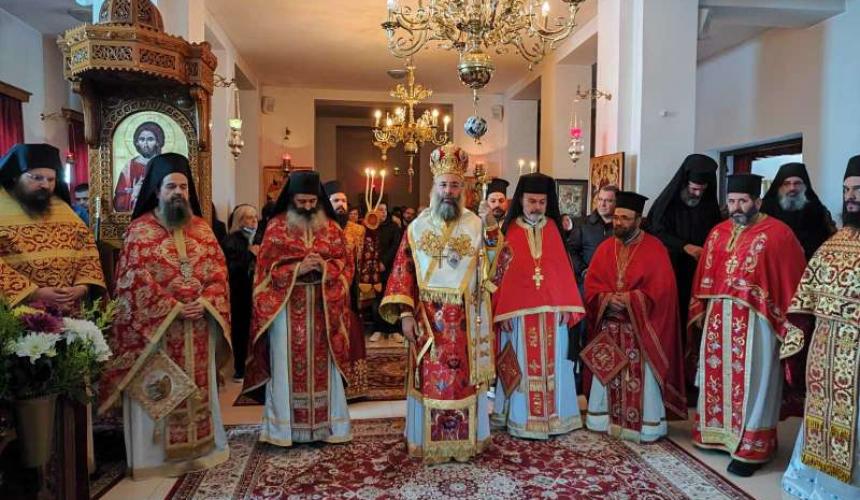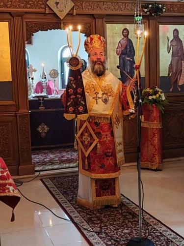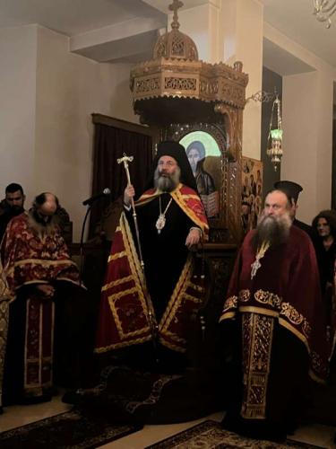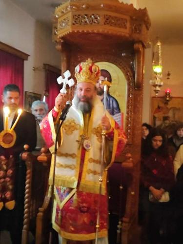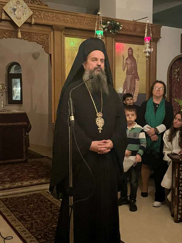 Προ της απολύσεως της Θείας Λειτουργίας, ο Επίσκοπός μας αναφέρθηκε στα μηνύματα της εορτίου αυτής περιόδου και της Μητροπόλεως των Εορτών, των Χριστουγέννων, καθώς και στα μηνύματα της ζωής και της μαρτυρίας του Οσιομάρτυρος Γεδεών, καλωσορίζοντας με αγάπη όλους τους ευλαβείς κληρικούς και τους προσκυνητές και συγχαίροντας την, υπό την ηγεσία του Οσιολογιωτάτου Μοναχού Νεκταρίου, παρισταμένη αντιπροσωπεία της Ιεράς Μονής Καρακάλλου για όλη τη φροντίδα, τη διάκριση και το εκκλησιαστικό φρόνημα, το οποίο μαρτυρούν.