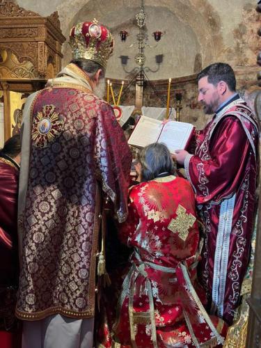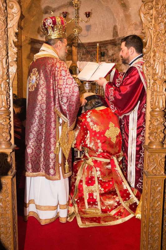 Κατά την τάξη, στο τέλος του Όρθρου, ο Σεβασμιώτατος χειροθέτησε σε Υποδιάκονο και, κατά τη Θεία Λειτουργία, χειροτόνησε στο βαθμό του Διακόνου τον εντιμ. κ. Γεώργιο Αλεξάκη, εξ Ηρακλείου ορμώμενο.