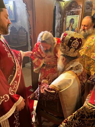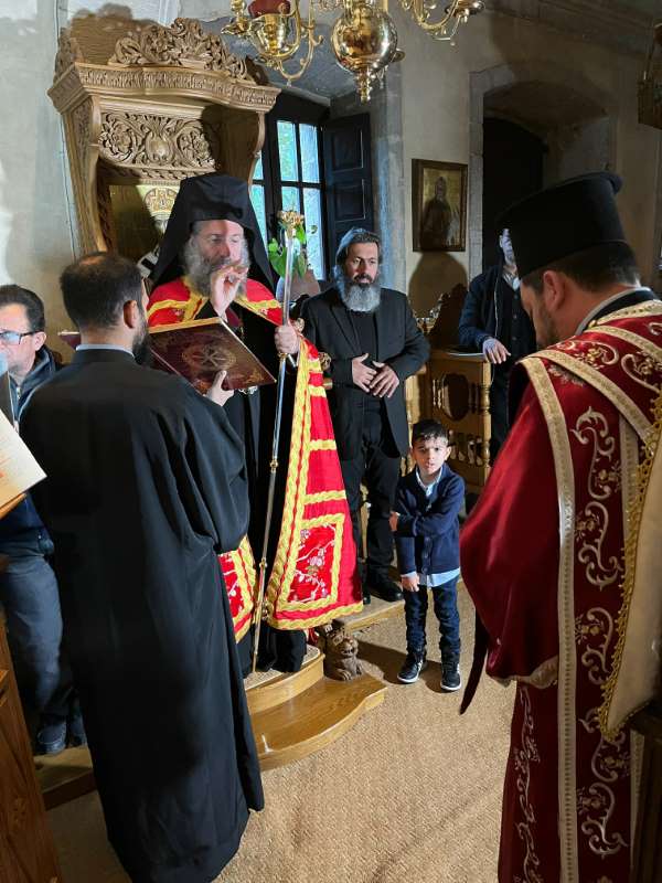 Μετά το πέρας της Θείας Λειτουργίας, ο Σεβασμιώτατος παρακάθησε με το πλήθος των παρισταμένων στο Αρχονταρίκι της Μονής, όπου οι πιστοί ευχήθηκαν στο νέο Διάκονο της Εκκλησίας το «Άξιος»