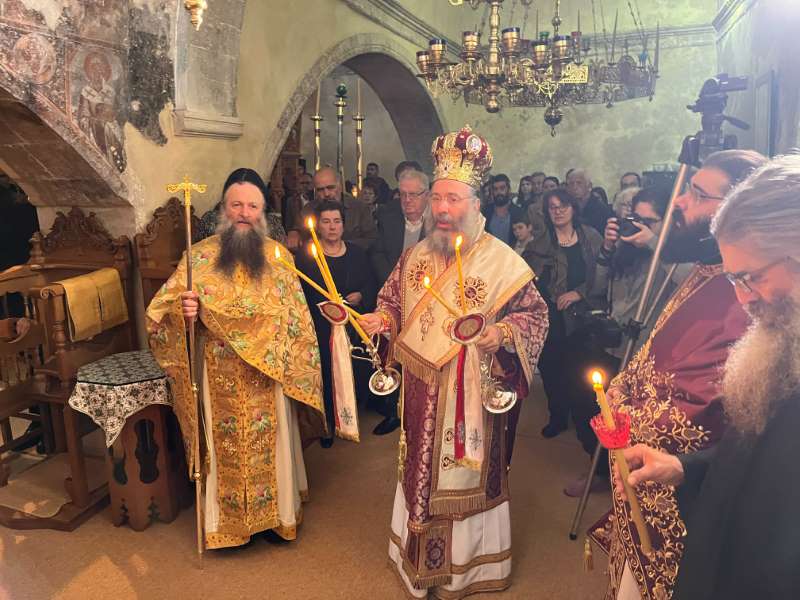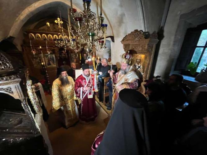 Το πρωί της Κυριακής μετά την Χριστού Γέννησιν, 31ης Δεκεμβρίου 2023, ο Σεβασμιώτατος Μητροπολίτης Ρεθύμνης και Αυλοποτάμου κ. Πρόδρομος χοροστάτησε κατά τον Όρθρο και τέλεσε την Αρχιερατική Θεία Λειτουργία στο Καθολικό της Ιεράς Μονής Τιμίου Προδρόμου Ατάλης-Μπαλή, συμπαραστατούμενος από τον Ηγούμενο της Μονής, Πανοσιολ. Αρχιμανδρίτη Παρθένιο Καλυβιανάκη, τον Πανοσιολ. Αρχιμανδρίτη Θεολόγο Παπαλεβυζάκη και τον Αχιδιάκονό του, Ιερολ. Κωνσταντίνο Ζουμπεράκη.