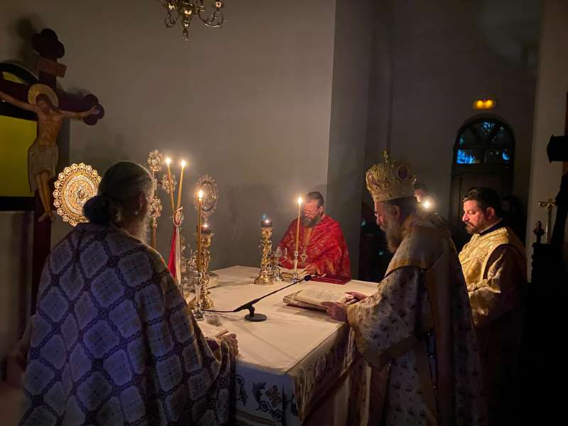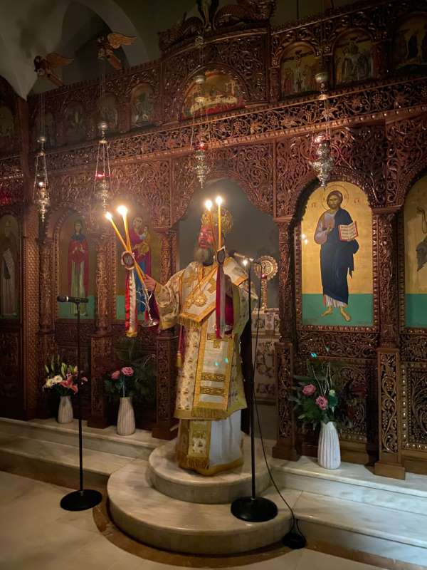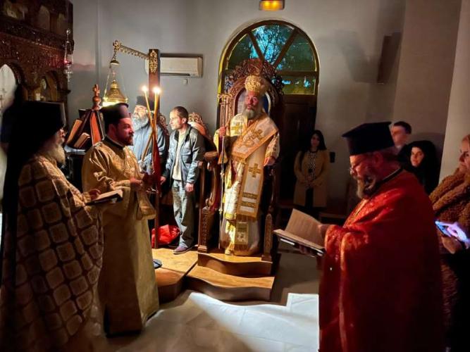 Στη συνέχεια, ο Σεβασμιώτατος Μητροπολίτης μας μετέβη στην Ιερά Μονή Αγίας Αναστασίας της Ρωμαίας Ρεθύμνης, όπου χοροστάτησε κατά τον Όρθρο και τέλεσε νυκτερινή Αρχιερατική Θεία Λειτουργία, συμπαραστατούμενος από τον Ηγούμενο της Μονής, Πανοσιολ. Αρχιμανδρίτη Βασίλειο Παπαδάκη, και τον Αιδεσιμολ. Πρωτοπρεσβύτερο Στέφανο Γκριγκόρα.