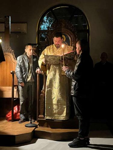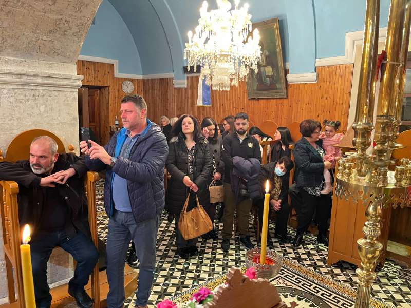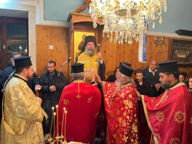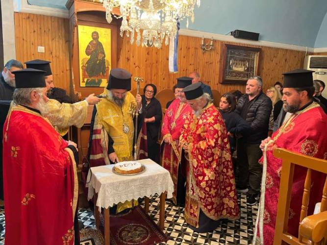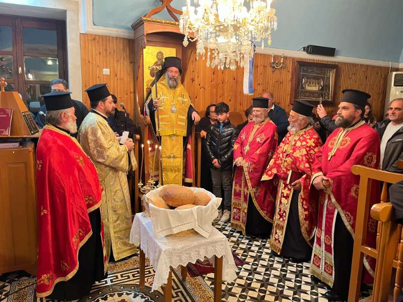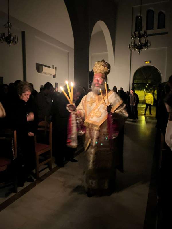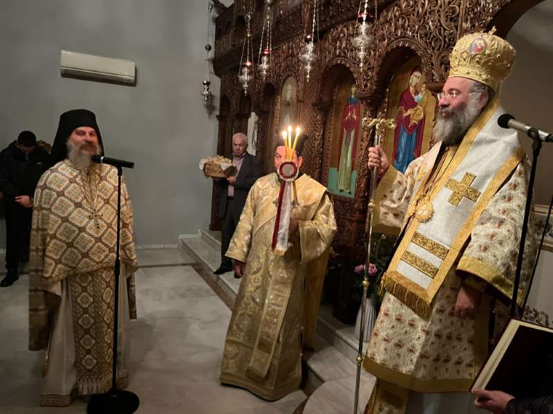 Προ της απολύσεως του Εσπερινού, ο Σεβασμιώτατος ευλόγησε τους προσφερόμενους άρτους, καθώς και την Αγιοβασιλόπιτα εις τιμήν και μνήμην του Αγίου Βασιλείου του Μεγάλου, και άκουσε με συγκίνηση την ευγενική προσφώνηση του Εφημερίου της Ενορίας π. Βασιλείου.