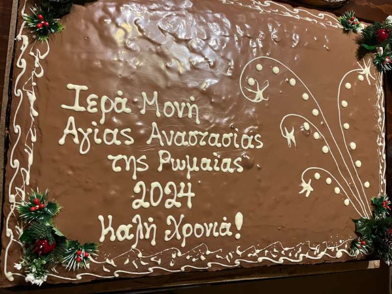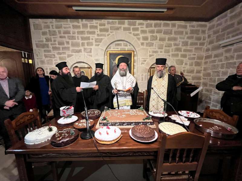 Μετά το πέρας της Θείας Λειτουργίας, κατά τις πρώτες πρωινές ώρες της Δευτέρας, 1ης Ιανουαρίου 2024, στο Αρχονταρίκι της Ιεράς Μονής τα παριστάμενα παιδιά έψαλαν τα κάλαντα και ευλογήθηκαν οι Αγιοβασιλόπιτες που διανεμήθηκαν σε όλους τους ανθρώπους, οι οποίοι παρέμειναν για τον κοινό εορτασμό.
