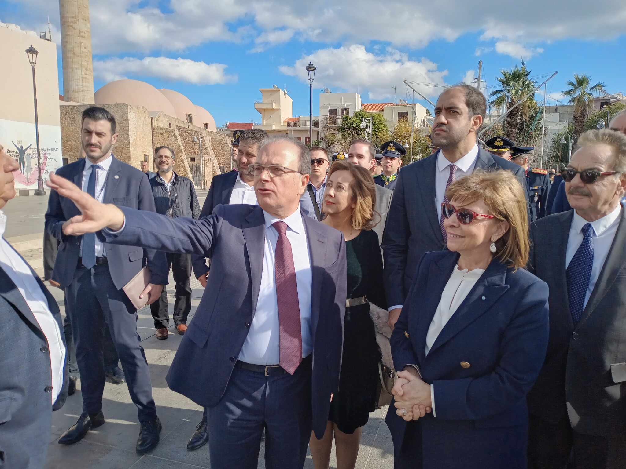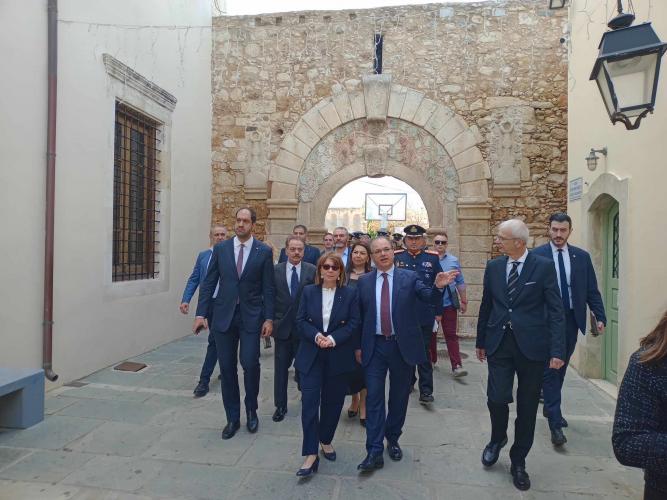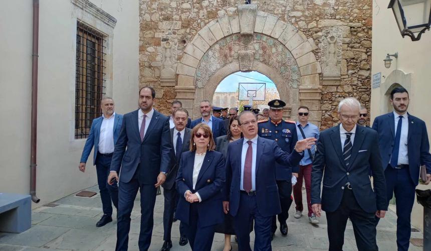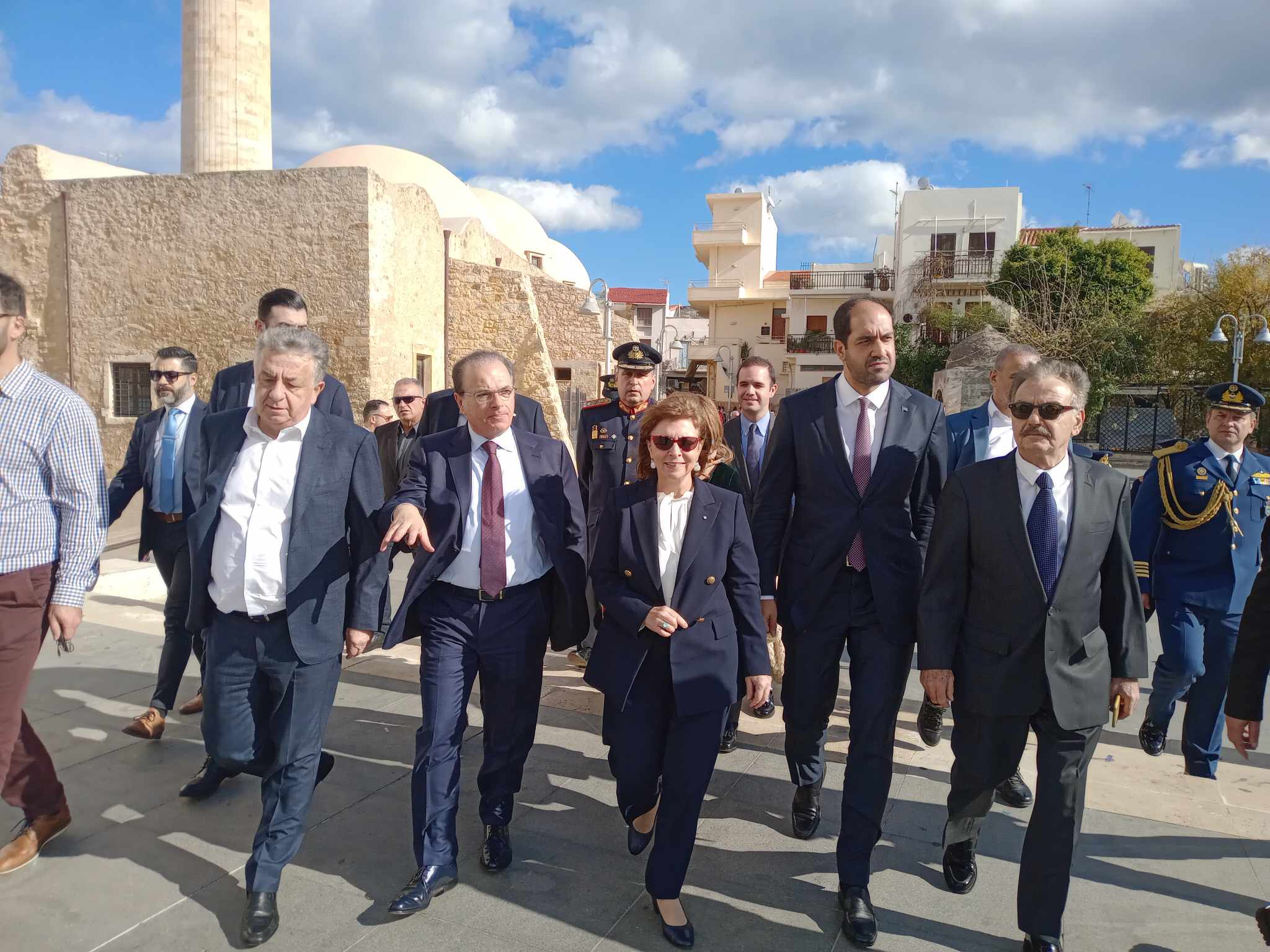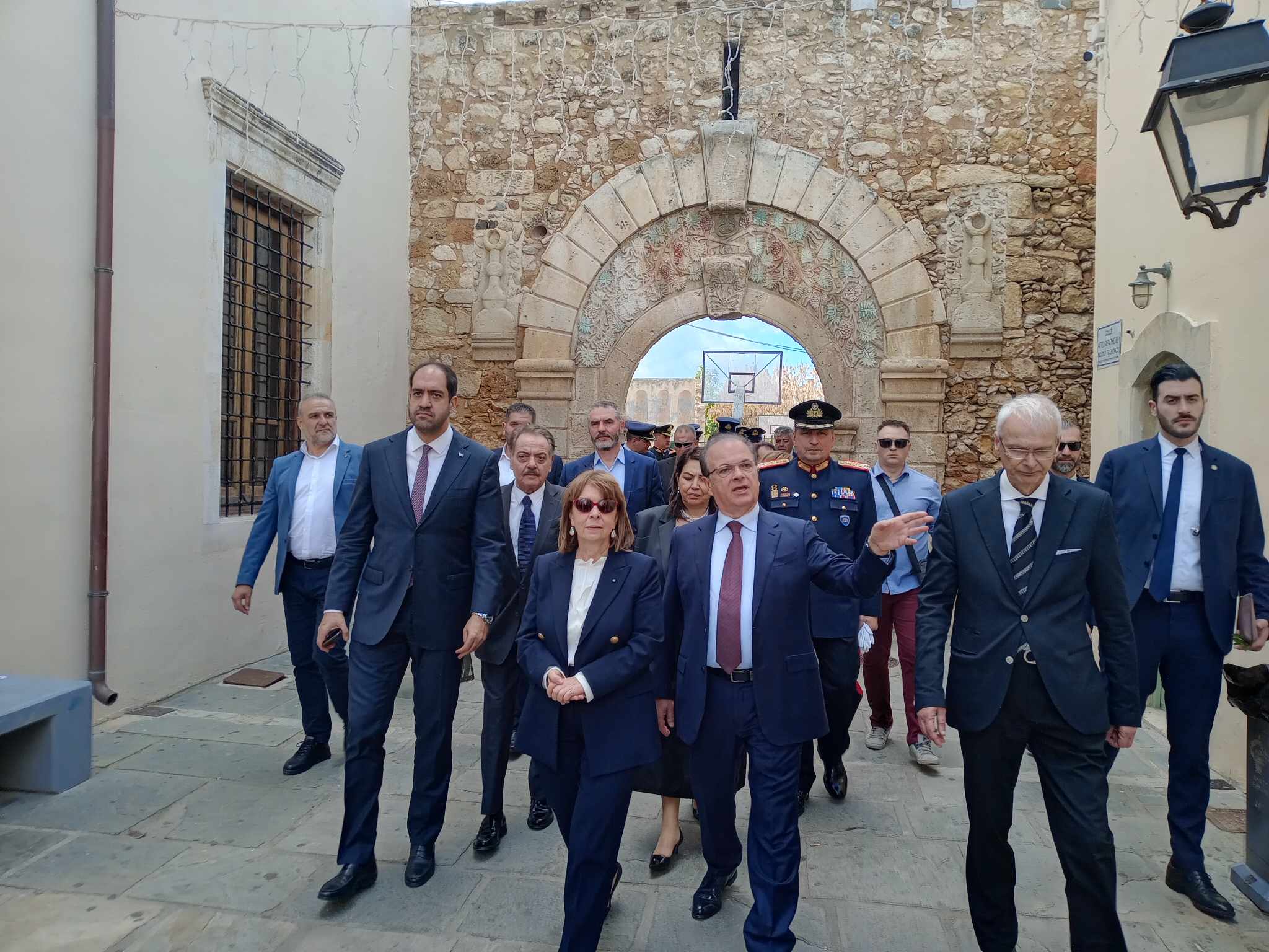 Την ξενάγηση της είχε αναλάβει ο Δήμαρχος Ρεθύμνης κ. Γιώργης Μαρινάκης, και συνόδευαν ο Υφυπουργός Εθνικής Άμυνας και Βουλευτής Ρεθύμνου της Ν.Δ. κ. Γιάννης Κεφαλογιάννης, ο Βουλευτής Ρεθύμνου του ΠΑΣΟΚ κ. Μανώλη Χνάρης ο Περιφερειάρχης Κρήτης Σταύρος Αρναουτάκης, ο Αντιπεριφερειάρχης Κρήτης κ. Μιχάλης Βάμβουκας, ο Δήμαρχος Μυλοποτάμου κ. Γιώργης Κλάδος, ο Αντιδήμαρχος Ρεθύμνου κ. Μάνος Τσάκωνας, η Επικεφαλής της Μείζονος Μειοψηφίας του Δ.Σ. Ρεθύμνου κ. Ρένα Κουτσαλεδάκη, ο Δημοτικός Σύμβουλος κ. Κωστής Ηλιάκης, η Δημοτική Σύμβουλος κ. Χαρά Λιανδρή και πολλοί άλλοι.