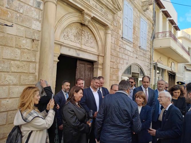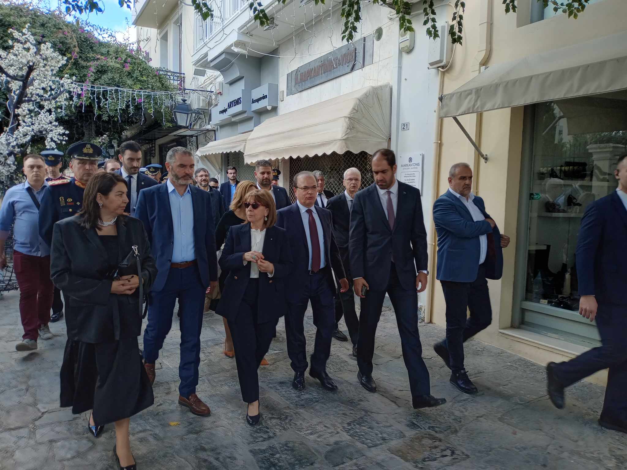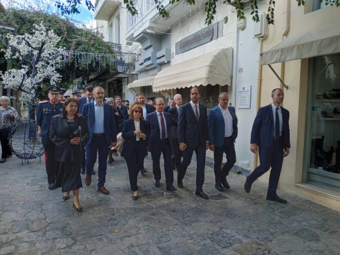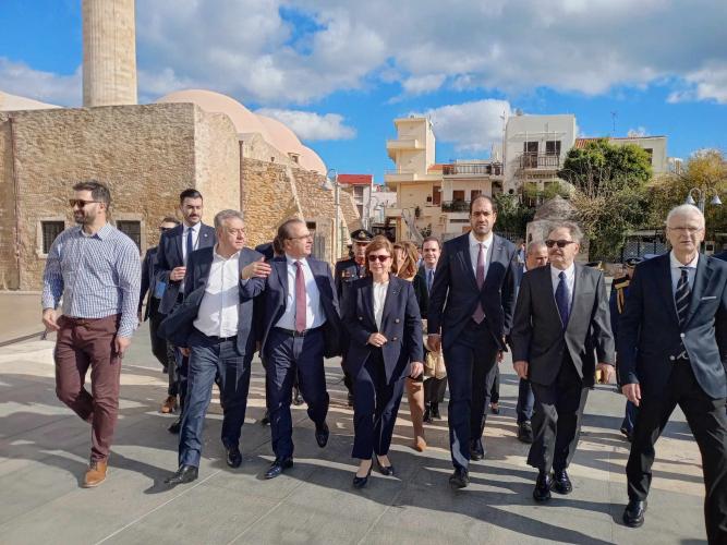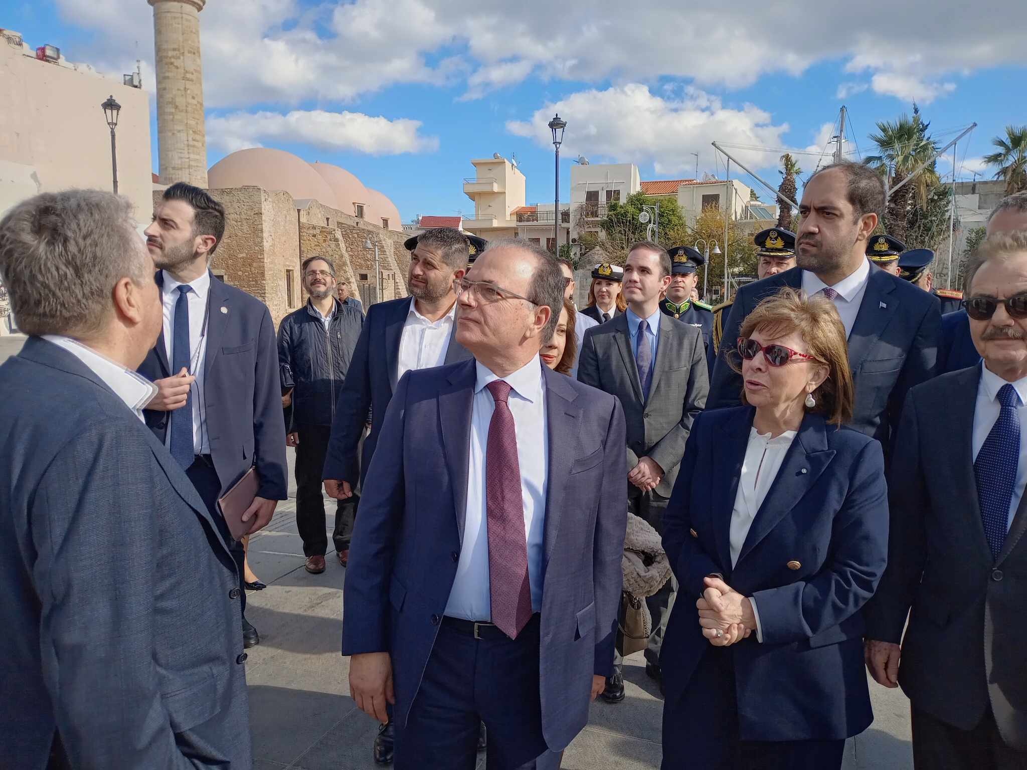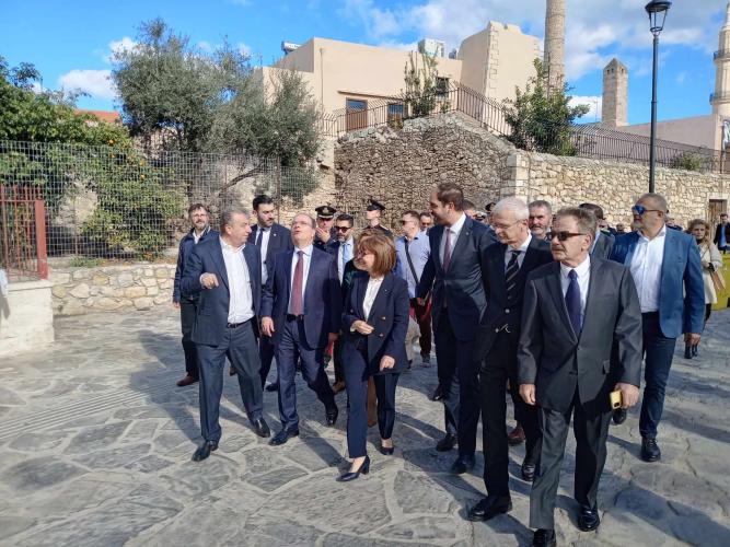 Την ξενάγηση της είχε αναλάβει ο Δήμαρχος Ρεθύμνης κ. Γιώργης Μαρινάκης, και συνόδευαν ο Υφυπουργός Εθνικής Άμυνας και Βουλευτής Ρεθύμνου της Ν.Δ. κ. Γιάννης Κεφαλογιάννης, ο Βουλευτής Ρεθύμνου του ΠΑΣΟΚ κ. Μανώλη Χνάρης ο Περιφερειάρχης Κρήτης Σταύρος Αρναουτάκης, ο Αντιπεριφερειάρχης Κρήτης κ. Μιχάλης Βάμβουκας, ο Δήμαρχος Μυλοποτάμου κ. Γιώργης Κλάδος, ο Αντιδήμαρχος Ρεθύμνου κ. Μάνος Τσάκωνας, η Επικεφαλής της Μείζονος Μειοψηφίας του Δ.Σ. Ρεθύμνου κ. Ρένα Κουτσαλεδάκη, ο Δημοτικός Σύμβουλος κ. Κωστής Ηλιάκης, η Δημοτική Σύμβουλος κ. Χαρά Λιανδρή και πολλοί άλλοι.
