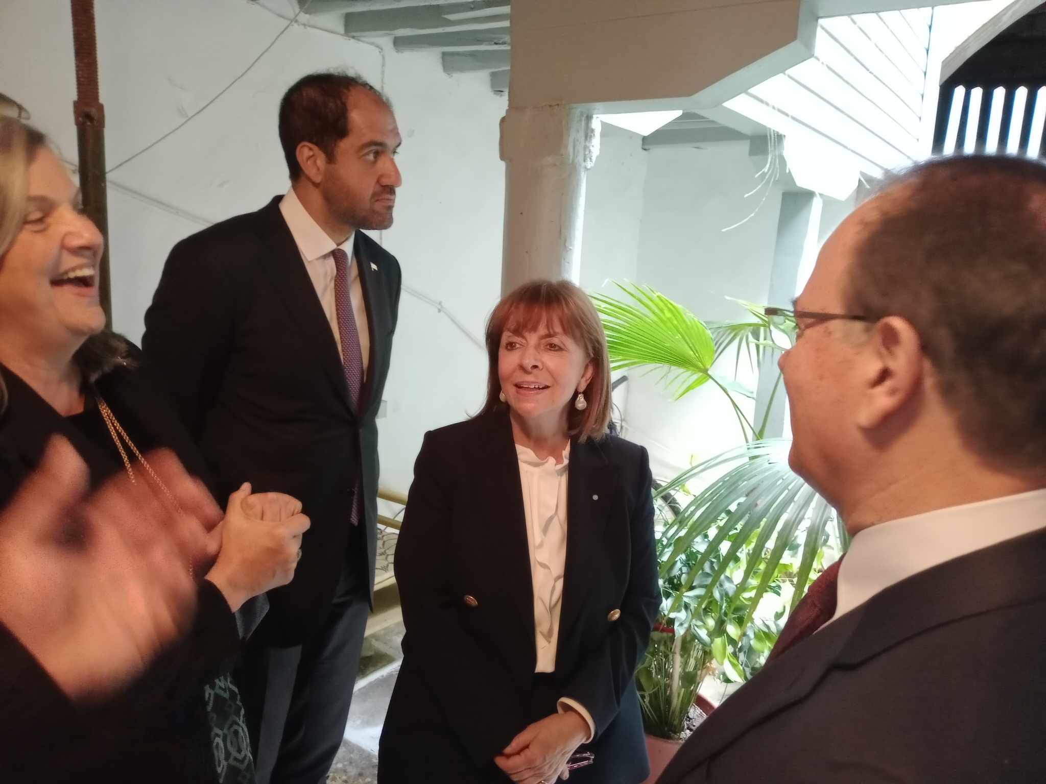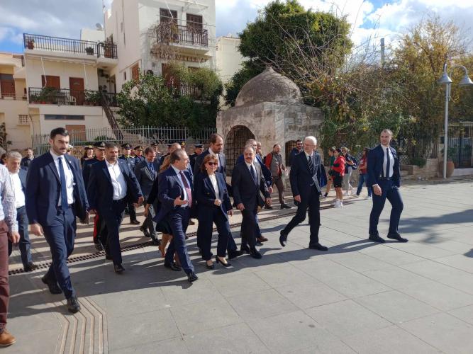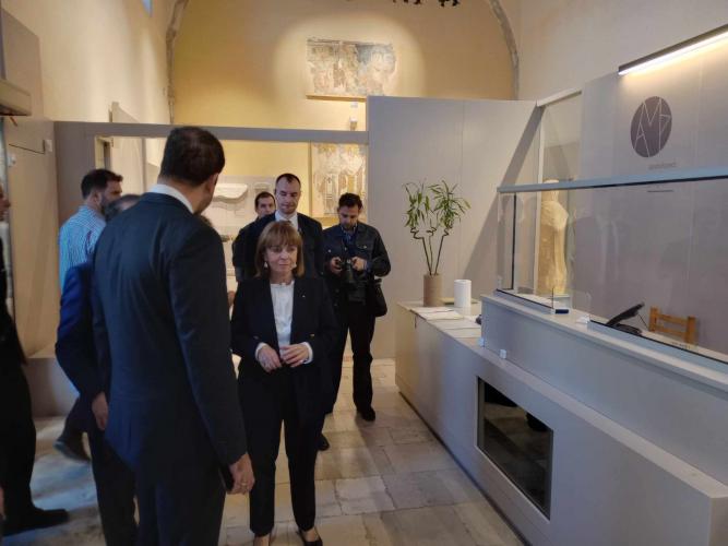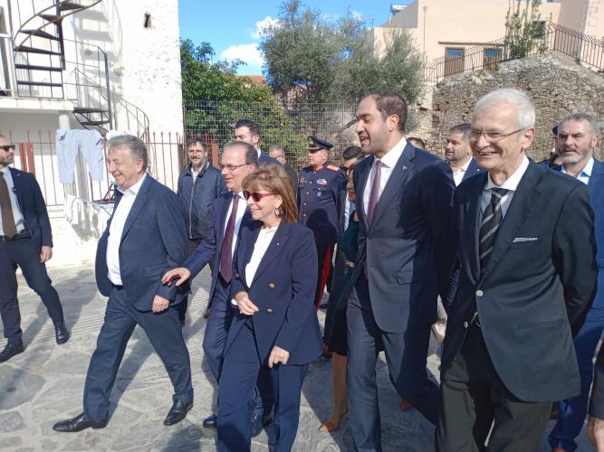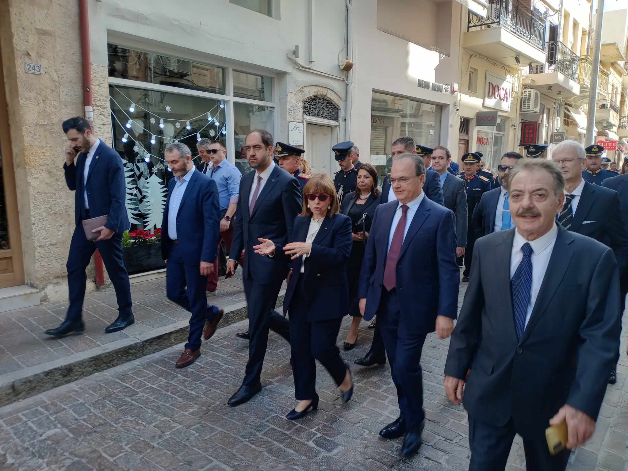 Η κ. Πρόεδρος ήταν ιδιαίτερα άνετη, μιλούσε και χαιρετούσε τον κόσμο και δεν έχανε ευκαιρία να τονίσει την σημασία διατήρησης των ιστορικών κέντρων, των μνημείων και την σημαντικότητα σεβασμού και προβολής του πολιτιστικού αποθέματος της χώρας μας, βάζοντας το Ρέθυμνο και αυτό που έβλεπε ως ένα καλό παράδειγμα συνολικής προσπάθειας των τοπικών φορέων.