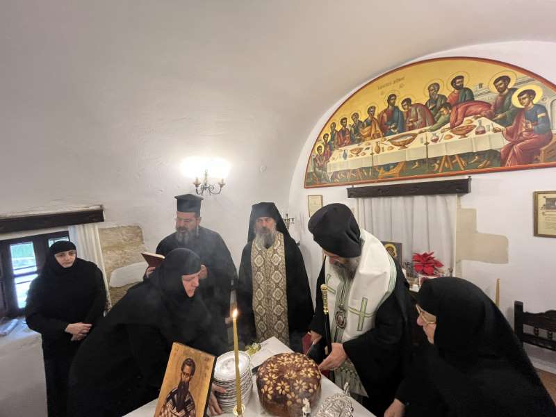 Ο Επίσκοπός μας ευχήθηκε και στις δύο γυναικείες Αδελφότητες της Ιεράς Μητροπόλεώς μας καλή, ευλογημένη και πολύκαρπη πνευματικά χρονιά, ώστε να γίνονται φάροι πνευματικοί που θα χαρίζουν ανασασμούς αιωνιότητας στην Ιερά Μητρόπολή μας και στους πολυπληθείς ευλαβείς προσκυνητές τους.