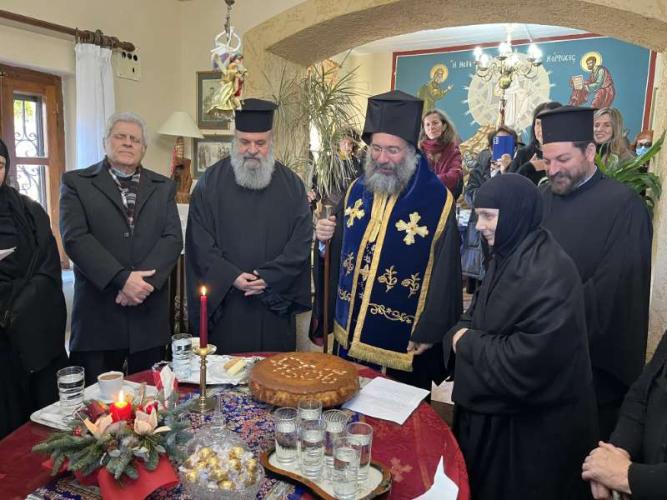 Επίσης, την Κυριακή, 14η Ιανουαρίου 2024, ο Σεβασμιώτατος τέλεσε την Αρχιερατική Θεία Λειτουργία στο Καθολικό της Ιεράς Μονής Σωτήρος Χριστού Κουμπέ πόλεως Ρεθύμνης και στη συνέχεια ευλόγησε την Αγιοβασιλόπιτα της Μονής.