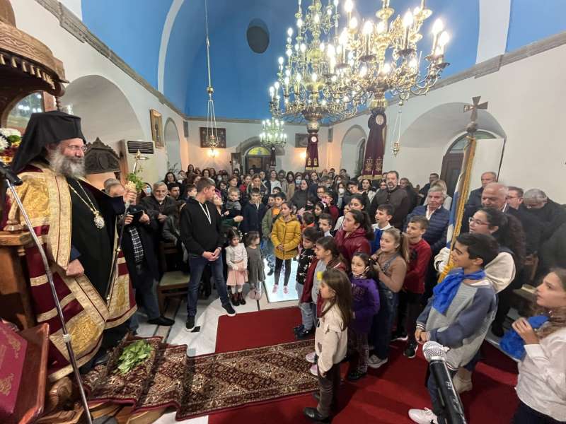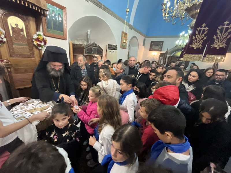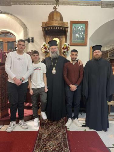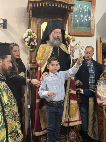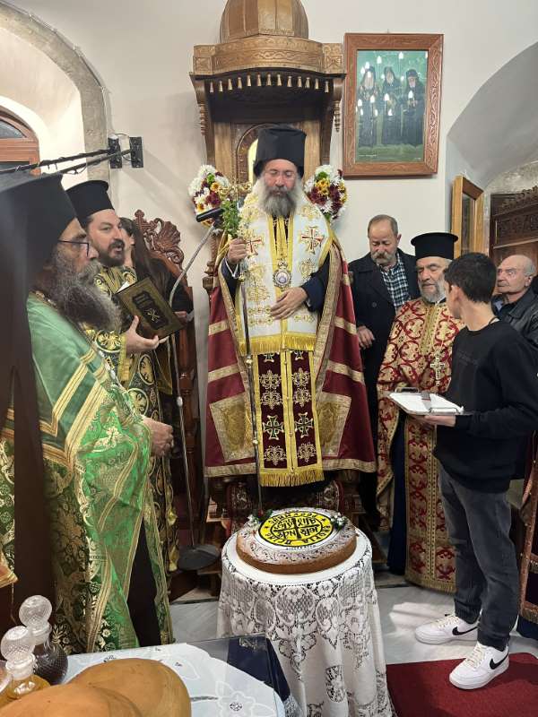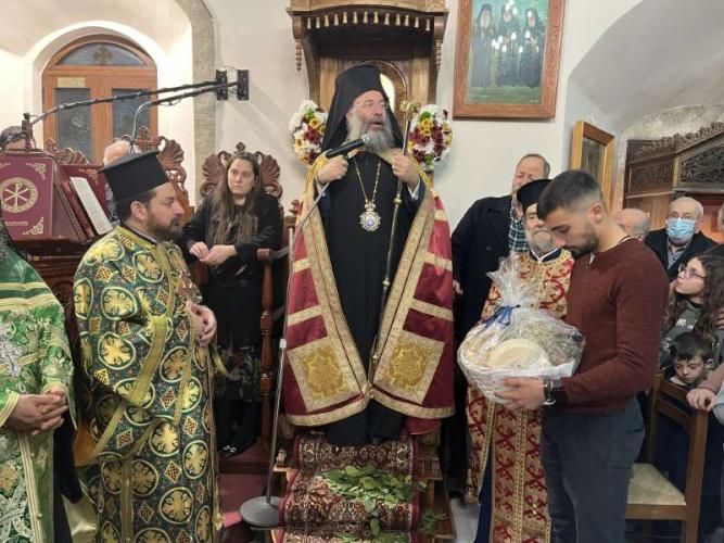 Προ της απολύσεως του Εσπερινού, ο Σεβασμιώτατος ευλόγησε την Αγιοβασιλόπιτα της Ενορίας και άκουσε με πνευματική αγαλλίαση την προσλαλιά του Αιδεσ. π. Ανδρέου Μπεμπή, εφημερεύοντος στην Ενορία Πρινέ, και του νέου Προέδρου της Τοπικής Κοινότητας.