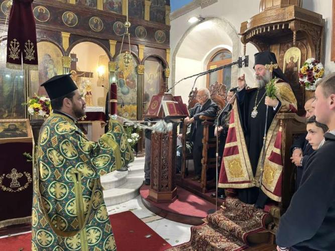 Το απόγευμα της Τρίτης, 16ης Ιανουαρίου 2024, κατά τον Εσπερινό της Εορτής του Οσίου και Θεοφόρου Πατρός ημών Αντωνίου του Μεγάλου, ο Σεβασμιώτατος Μητροπολίτης Ρεθύμνης και Αυλοποτάμου κ. Πρόδρομος χοροστάτησε στον πανηγυρίζοντα Ιερό Καθεδρικό Ναό Αγίου Αντωνίου της Ενορίας Πρινέ Ρεθύμνου, συμπαραστατούμενος από πολλούς κληρικούς της Ιεράς Μητροπόλεώς μας, παρουσία Αντιδημάρχων, Περιφερειακών και Δημοτικών Συμβούλων, του Λιμενάρχου Ρεθύμνης και πλήθους πιστών.