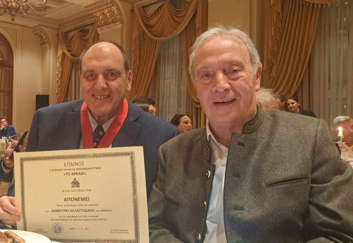 Οταν σε αναγνωρίζουν οι συντοπίτες σου είναι ένα χάδι από την πατρώα γη, μια ένδειξη ότι και συ κάτι της προσέφερες. Ο λόγος για τον Δημήτρη Καλαϊτζιδάκη που τιμήθηκε από τον Σύλλογο Ρεθύμνιων Αττικής, το «Αρκάδι», για τη μεγάλη συνεισφορά στη γενέτειρα πόλη αλλά και την Κρήτη μέσα από την πολυετή επαγγελματική του ενασχόληση με τα ξενοδοχειακά και τη γαστρονομία του νησιού.