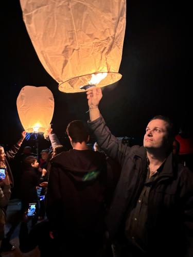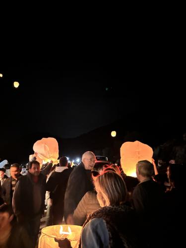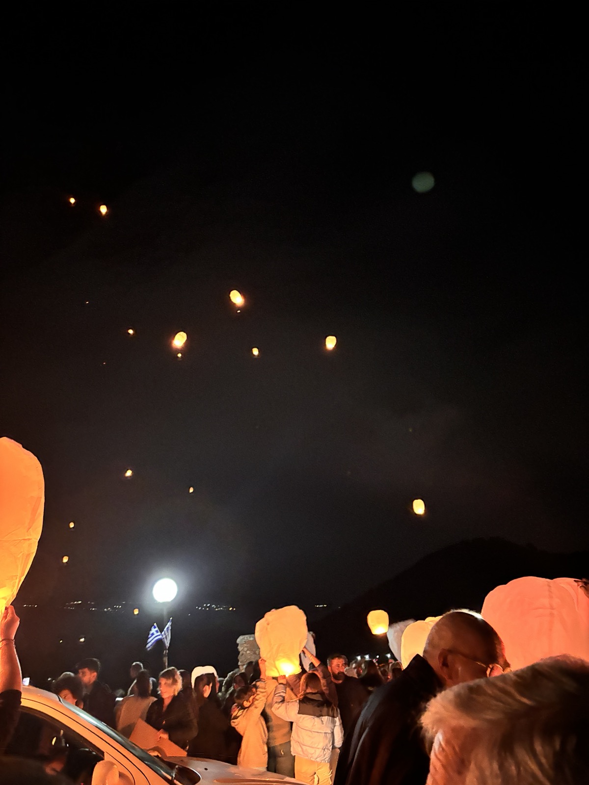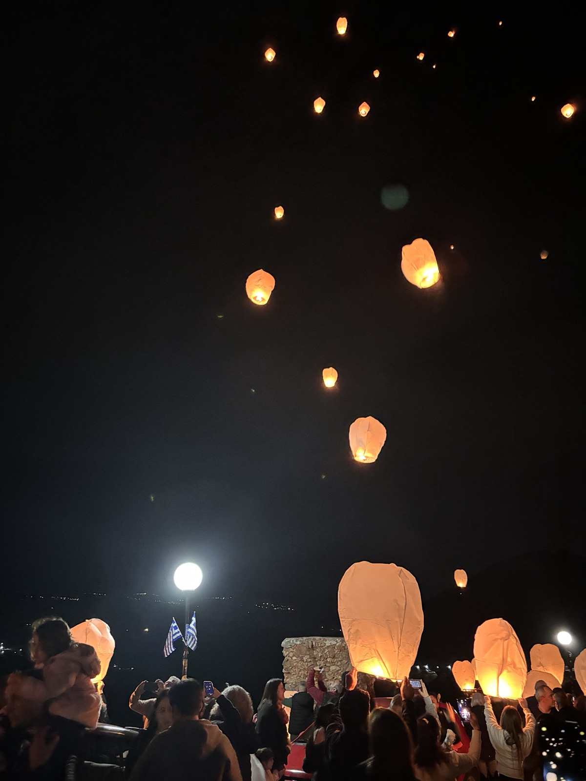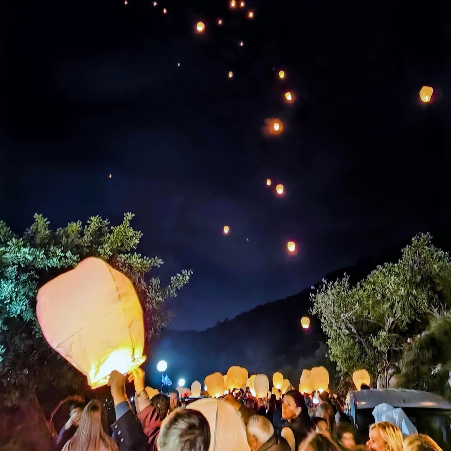 Η αυλαία των εκδηλώσεων άνοιξε χθες με μια εντυπωσιακή και εξαιρετικά συγκινητική τελετή καθώς εκατοντάδες παιδιά αφού τελείωσαν οι αγώνες ποδοσφαίρου, κράτησαν στα χέρια τους αναμμένα φαναράκια και ξεκίνησαν πορεία από το γήπεδο του χωριού προς το σπήλαιο. Πλήθος κόσμου είχε κατακλίσει την είσοδο του σπηλαίου από κάθε γωνιά της Κρήτης. Φανερά συγκινημένοι μικροί και μεγάλοι κάτοικοι της περιοχής αλλά και επισκέπτες, άναψαν και άφησαν ελεύθερα τον ουρανό ιπτάμενα φαναράκια αποδίδοντας φόρο τιμής στους 370 αμάχους που βίωσαν την κτηνωδία. Με φόντο το «φωτεινό» νυχτερινό ουρανό και με τα φαναράκια να συμβολίζουν τις ψυχές των αμάχων, τα συναισθήματα και το θέαμα ήταν συγκλονιστικά.