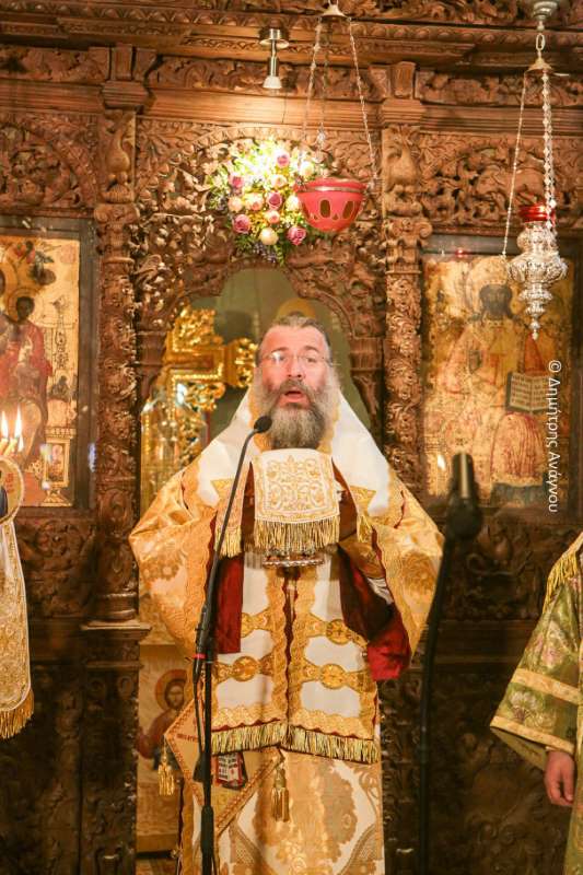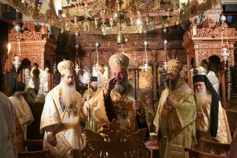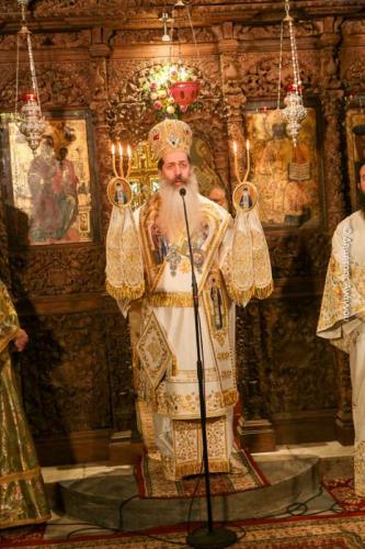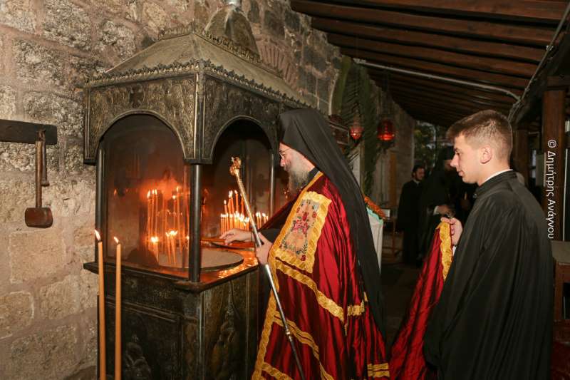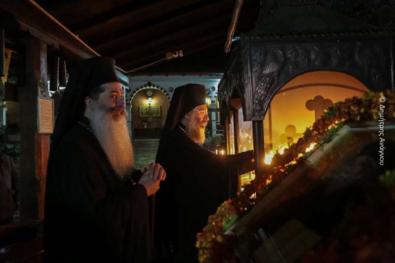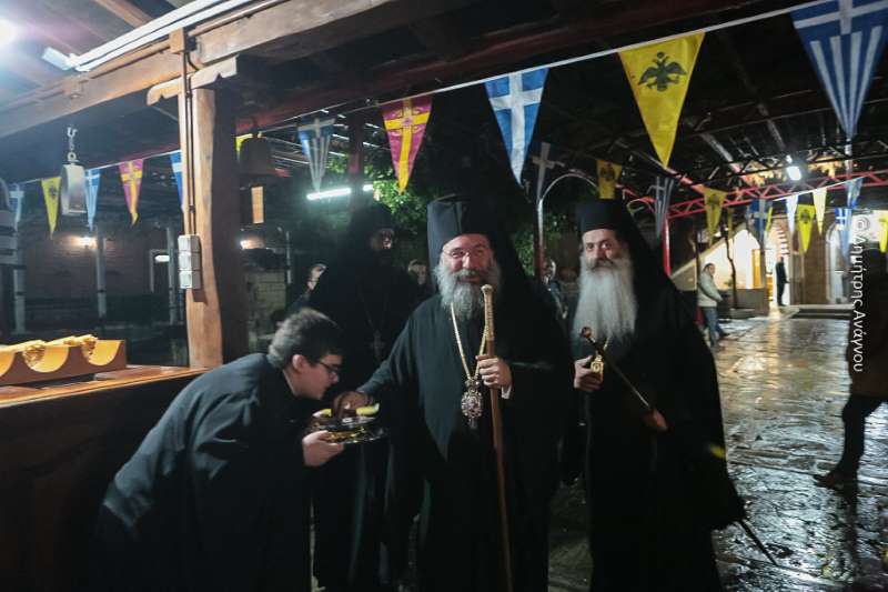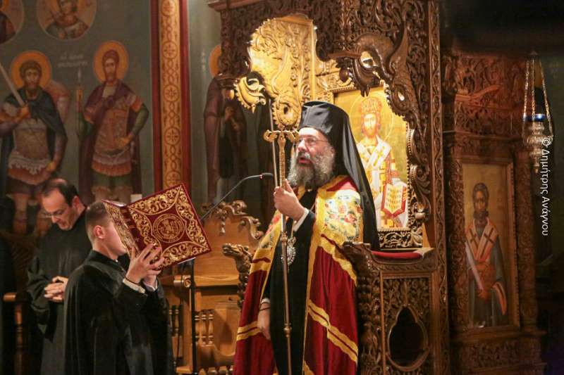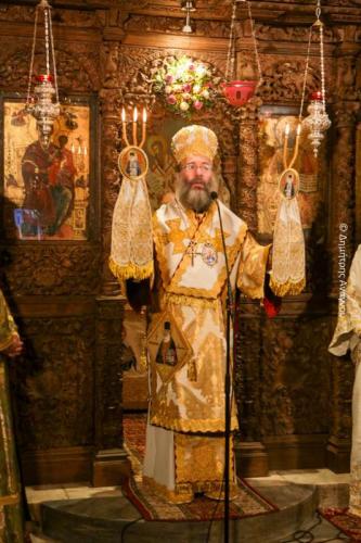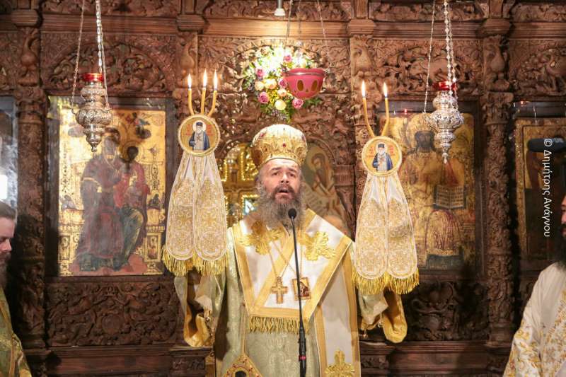 Κατά τον Εσπερινό της Πανηγύρεως χοροστάτησε ο Σεβασμιώτατος Μητροπολίτης Φλωρίνης, Πρεσπών και Εορδαίας κ. Ειρηναίος, συγχοροστατούντων του Σεβασμιωτάτου Μητροπολίτου Φθιώτιδος κ. Συμεών και του Σεβασμιωτάτου Μητροπολίτου Ρεθύμνης και Αυλοποτάμου κ. Προδρόμου.