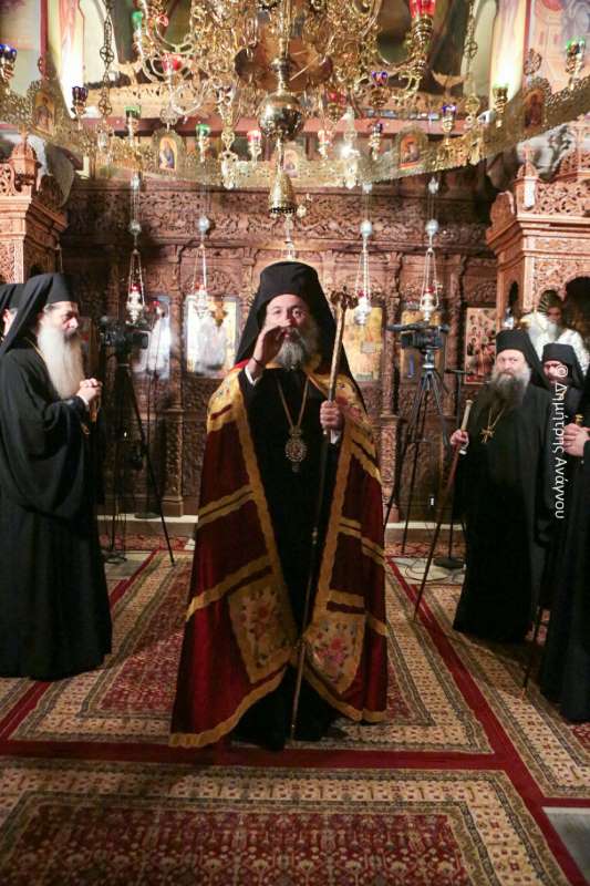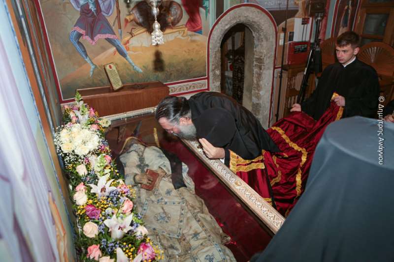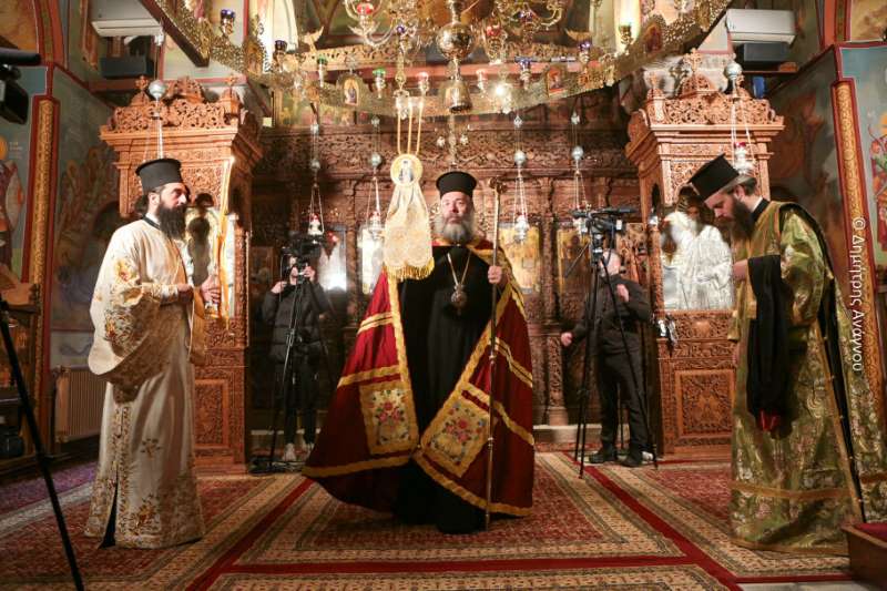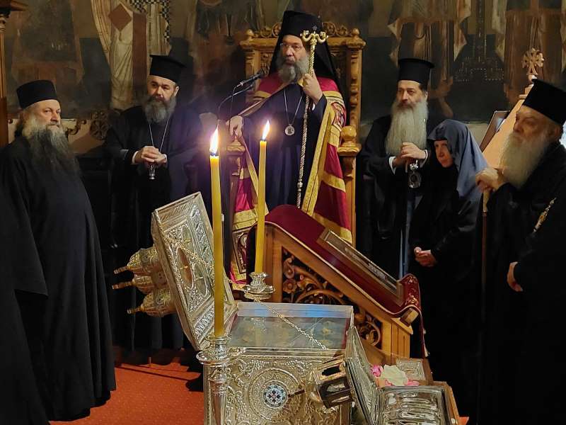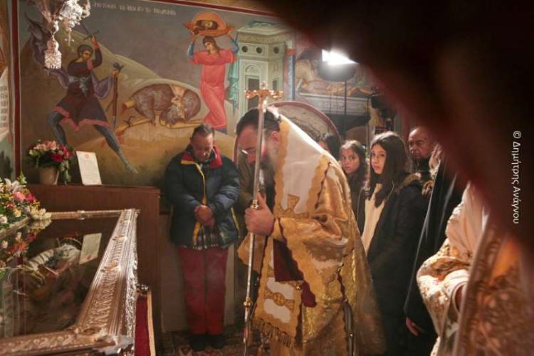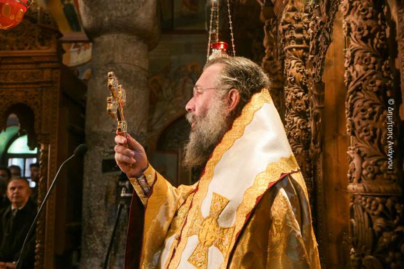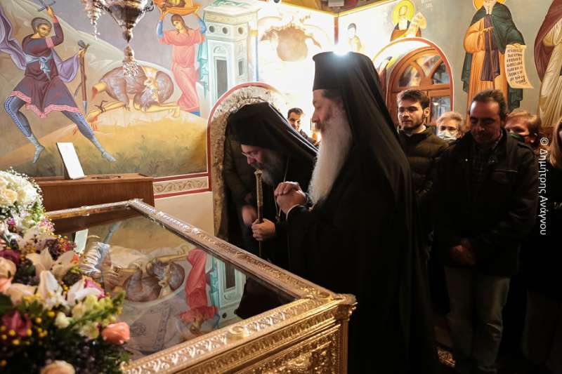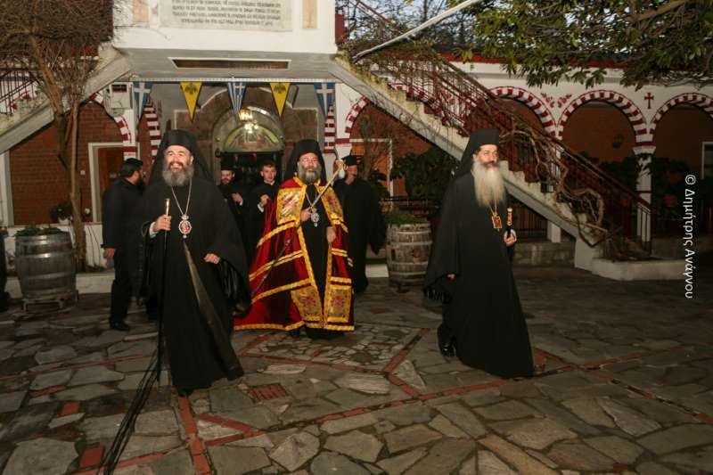 Κατά τον Εσπερινό της Πανηγύρεως χοροστάτησε ο Σεβασμιώτατος Μητροπολίτης Φλωρίνης, Πρεσπών και Εορδαίας κ. Ειρηναίος, συγχοροστατούντων του Σεβασμιωτάτου Μητροπολίτου Φθιώτιδος κ. Συμεών και του Σεβασμιωτάτου Μητροπολίτου Ρεθύμνης και Αυλοποτάμου κ. Προδρόμου.