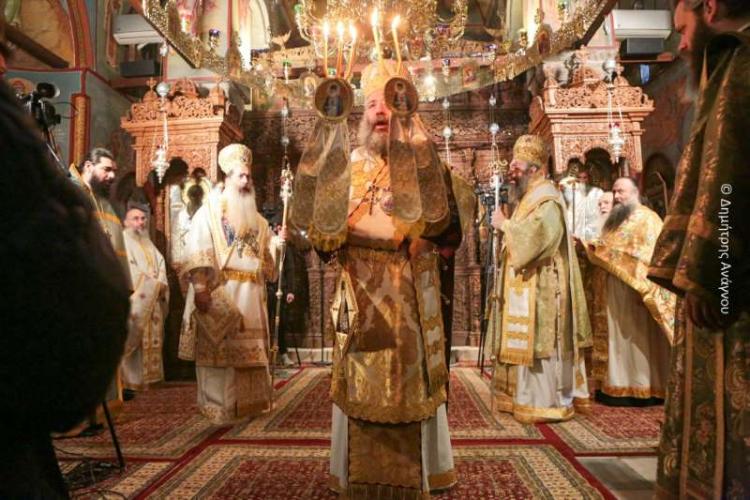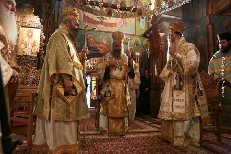 Το πρωί της κυριωνύμου ημέρας, Δευτέρας, 22ας Ιανουαρίου 2024, τελέσθηκε Τρισαρχιερατική Θεία Λειτουργία, προεξάρχοντος του Σεβασμιωτάτου Μητροπολίτου Ρεθύμνης και Αυλοποτάμου κ. Προδρόμου και συλλειτουργούντων των Σεβασμιωτάτων Μητροπολιτών Φλωρίνης, Πρεσπών και Εορδαίας κ. Ειρηναίου και Φθιώτιδος κ. Συμεών.
