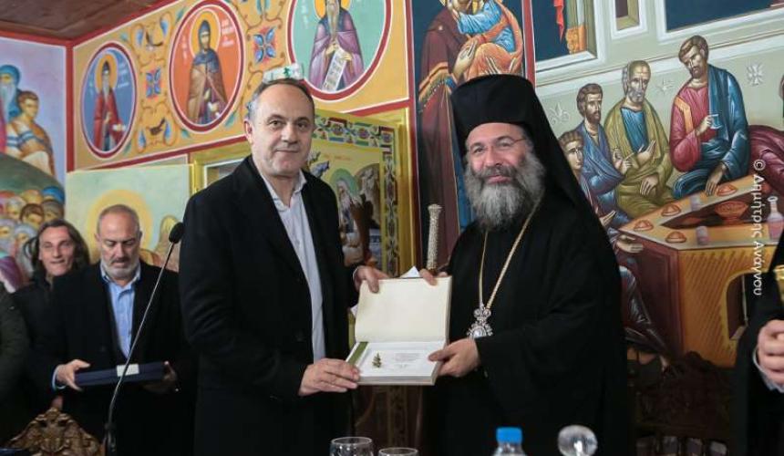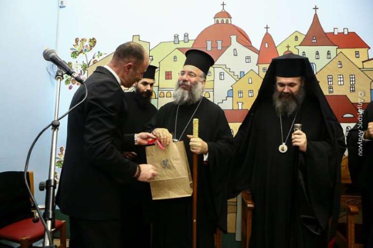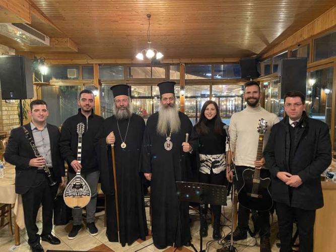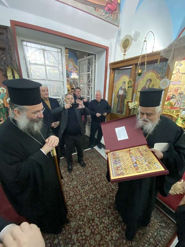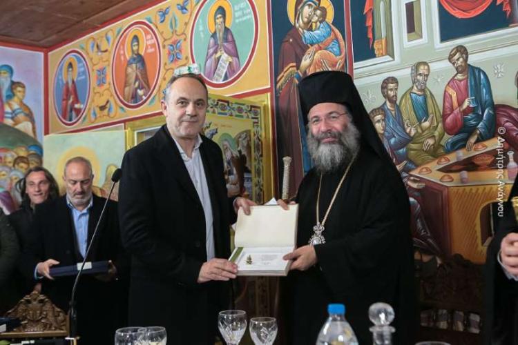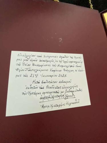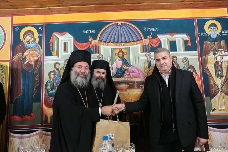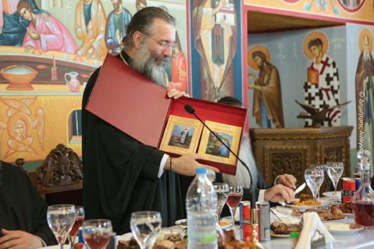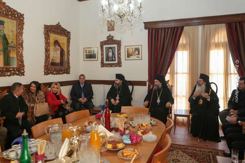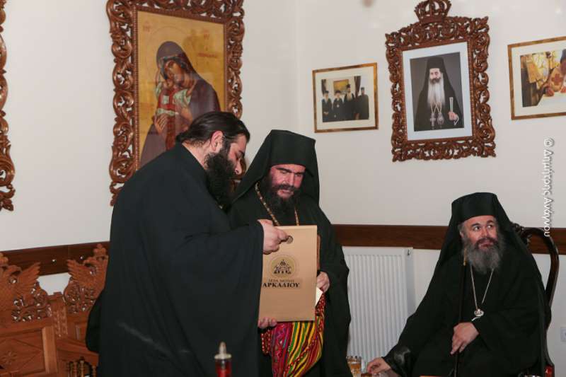 Ακολούθησε εόρτια τράπεζα και ανταλλαγή δώρων και προσφωνήσεων από πλευράς του Καθηγουμένου της Ιεράς Μονής Αγάθωνος, Πανοσιολ. Αρχιμανδρίτου Γερμανού.