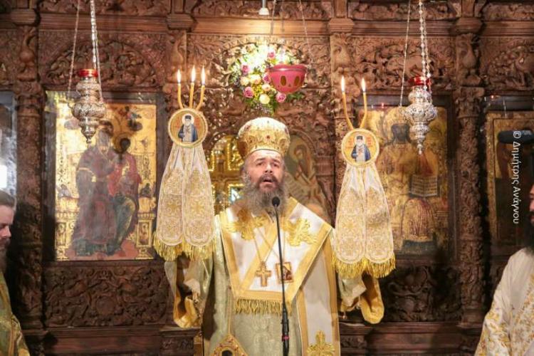 Τον Θείο λόγο κήρυξε ο Σεβασμιώτατος Μητροπολίτης μας κ. Πρόδρομος, ο οποίος αναφέρθηκε στα χαρίσματα του Οσίου Βησσαρίωνος του Αγαθωνίτου, στο γεγονός ότι πέτυχε τον στόχο, δηλαδή την σωτηρία και την αιώνια κοινωνία με τον Χριστό, στην πραγματικότητα ότι η Αγία μας Εκκλησία δεν παύει να είναι εργαστήριο αγιότητος, καθώς και στην ανάγκη να διακρίνουμε μέσα στις δυσκολίες και τις «κακοκαιρίες» της κάθε εποχής την ακτίνα του φωτός, το χέρι του Θεού.