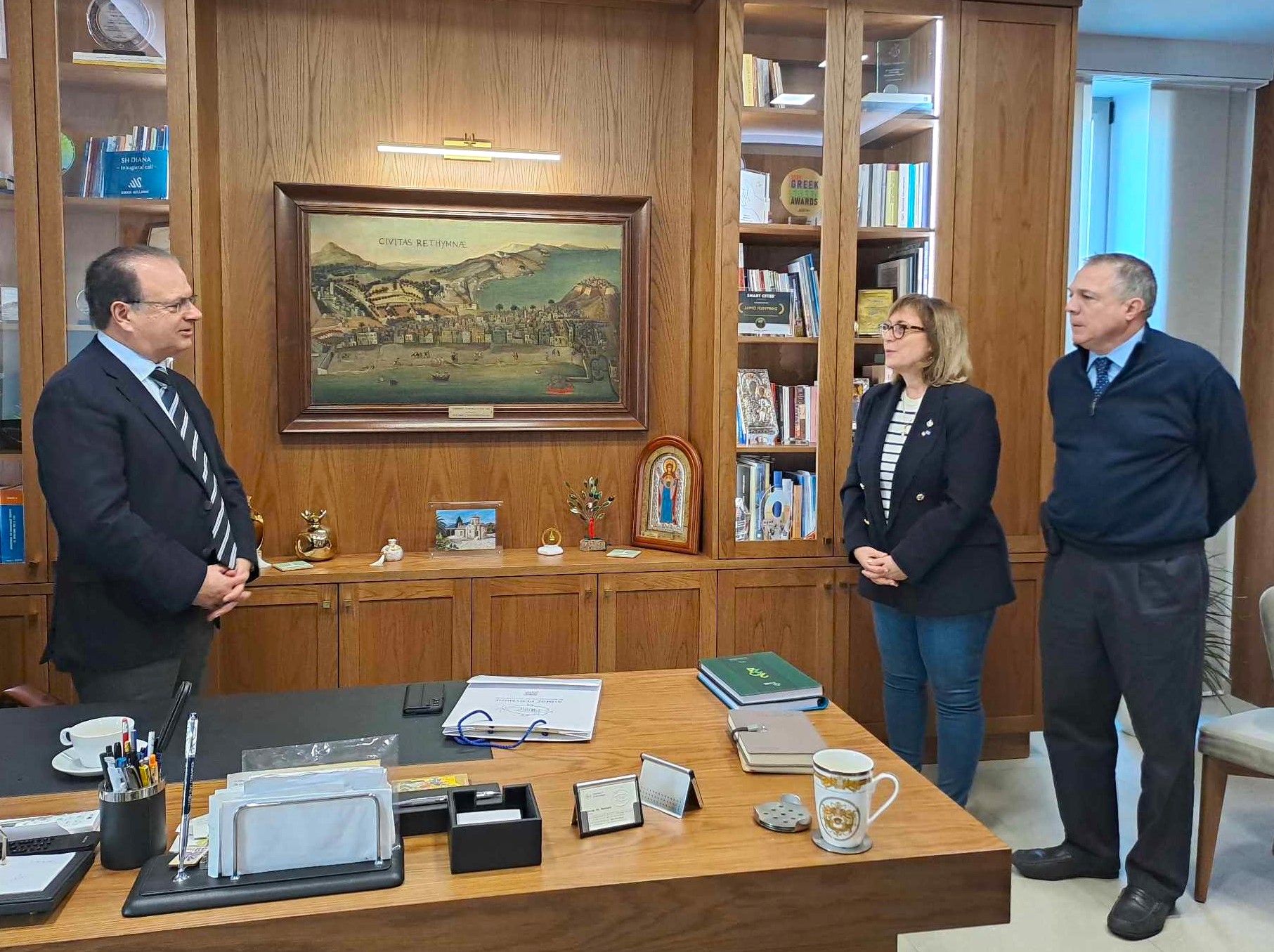Συνεργασία με τον Πρόεδρο κ. Λεωνίδα Ραπτάκη και Μέλη του Διοικητικού Συμβουλίου της Παγκόσμιας Διακοινοβουλευτικής Ένωσης Ελληνισμού (Πα.Δ.Ε.Ε.) είχε ο Δήμαρχος Ρεθύμνης κ. Γιώργης Μαρινάκης, παρουσία της Αντιπεριφερειάρχη Ρεθύμνου κ. Μαίρης Λιονή, στο πλαίσιο πρόσφατης επίσκεψης τους στο Δημαρχείο Ρεθύμνου.