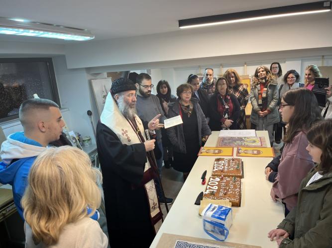 Το βράδυ της Δευτέρας, 29ης Ιανουαρίου 2024, στο Κέντρο Πολιτισμικής και Κοινωνικής Διακονίας «ΘΕΟΜΗΤΩΡ», ο Σεβασμιώτατος Μητροπολίτης Ρεθύμνης και Αυλοποτάμου κ. Πρόδρομος ευλόγησε τις Αγιοβασιλόπιτες των Σχολών Αγιογραφίας και Ψηφιδωτού της Ιεράς Μητροπόλεώς μας, με την παρουσία των διδασκόντων κ. Εμμανουήλ Ρουκούδη και κ. Νικολάου Ρουσσάκη και των διδασκομένων στις εν λόγω Σχολές.