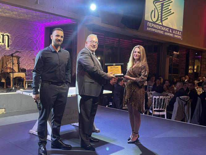 Ακολούθησε βράβευση των μακροβιότερων εργαζομένων στην εταιρία για την πολύτιμη συνεισφορά τους, την κα Τζένη Τσοράπη που εργάζεται στο Λογιστήριο, και τον κο Δημήτρη Φρυγανάκη που ανήκει στην ομάδα πωλήσεων του Ρεθύμνου.