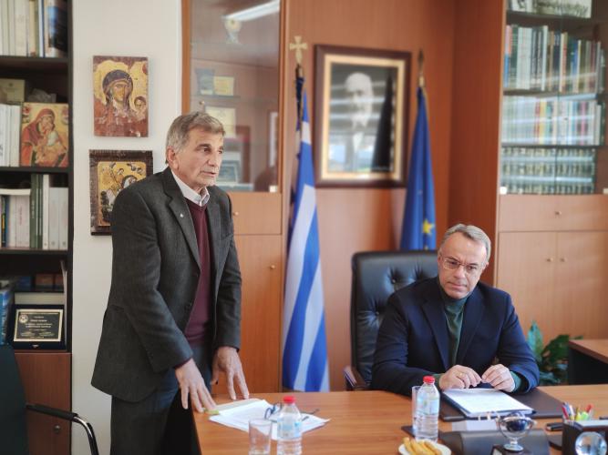 Τον Υπουργό Υποδομών και Μεταφορών κ. Χρήστο Σταϊκούρα υποδέχτηκε το πρωί της Δευτέρας στο Δημαρχείο Αμαρίου, εν αναμονή της σχετικής υπογραφής των δανειακών συμβάσεων χρηματοδότησης του έργου κατασκευής του φράγματος Πλατύ στις 16 Φεβρουαρίου, ο Δήμαρχος Αμαρίου κ. Παντελής Μουρτζανός.