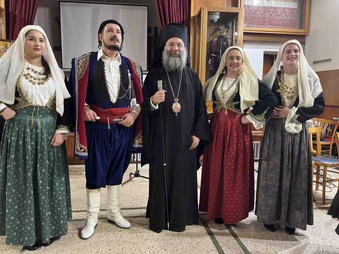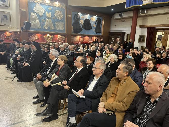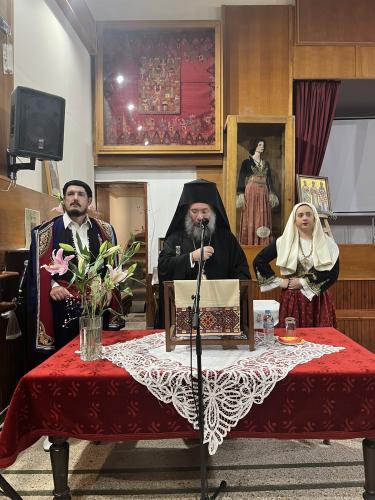 Τον ομιλητή πλαισίωναν ένστολοι Κρητικοί, οι Νίκος Τσουπάκης, Αναστασία Τσικιντίκου, Άργη Αρχοντάκη και Έλενα Τζώρτζογλου, τους οποίους μάλιστα ο σεβασμιώτατος ευχαρίστησε ιδιαιτέρως.